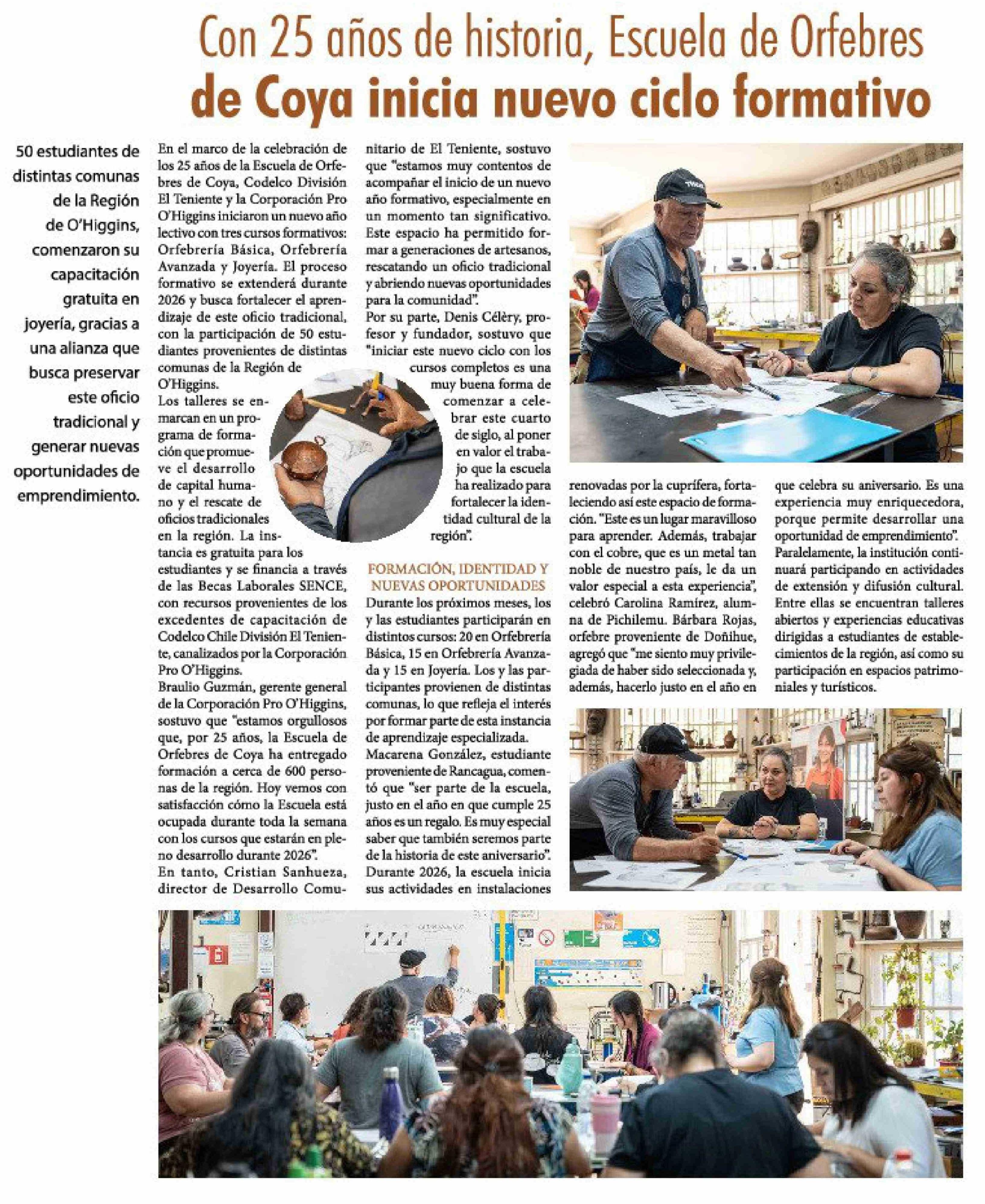 Título: Con 25 años de historia, Escuela de Orfebres de Coya inicia nuevo ciclo formativo