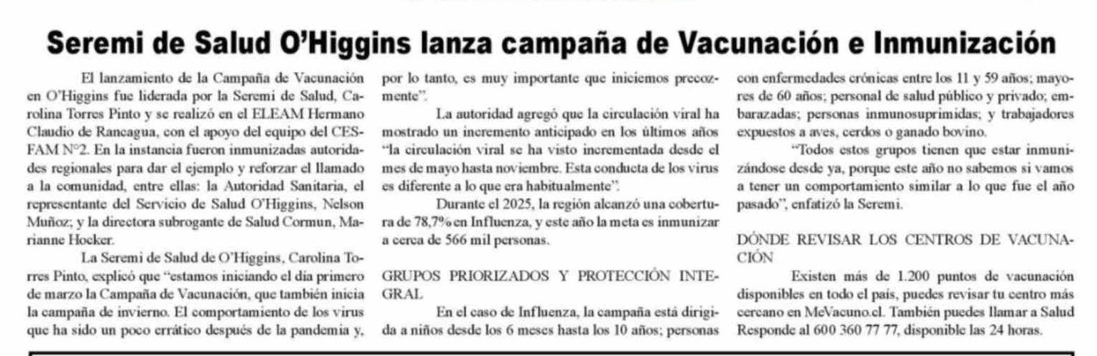 Título: Seremi de Salud O'Higgins lanza campaña de Vacunación e Inmunización