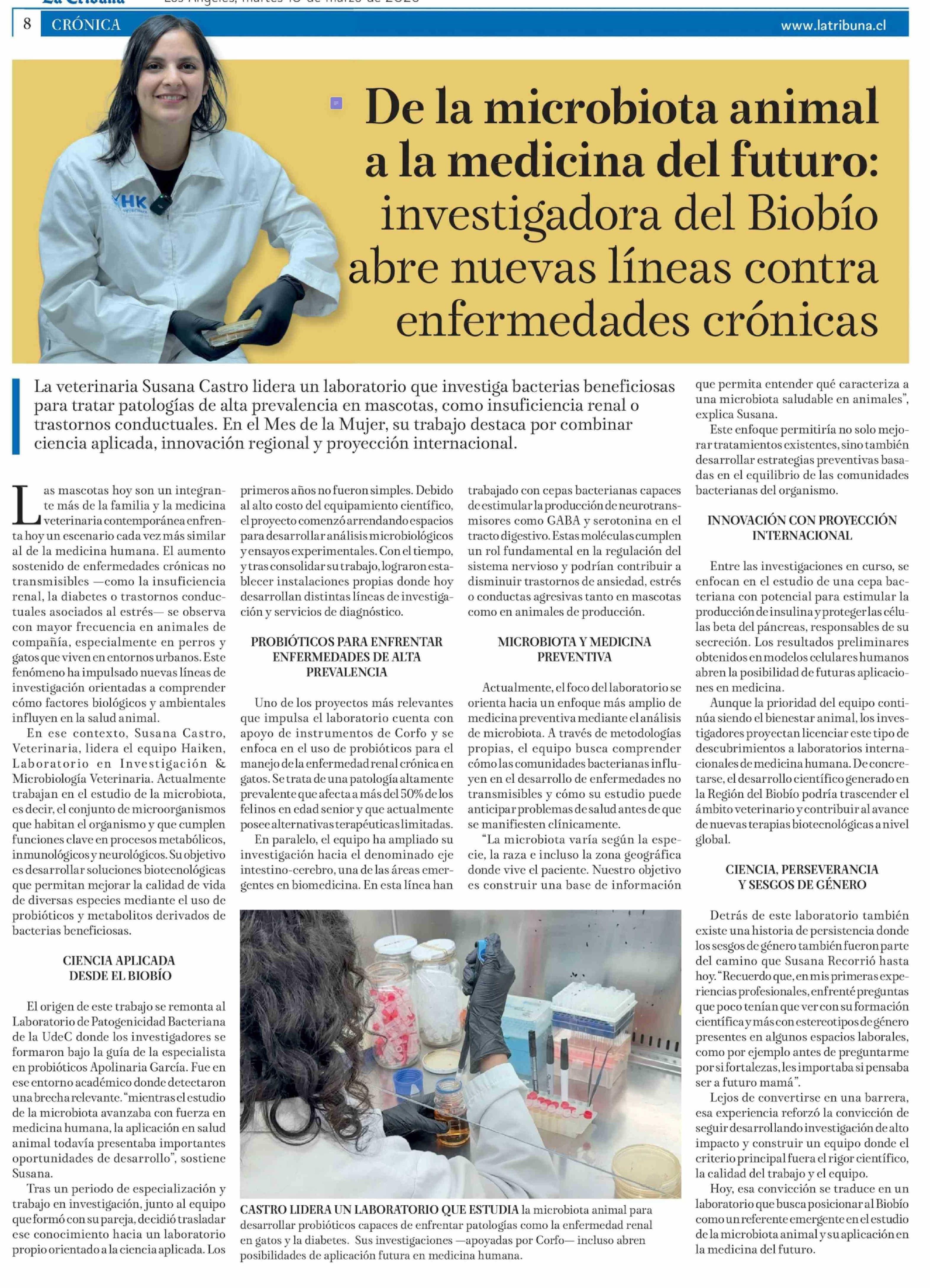 Título: De la microbiota animal a la medicina del futuro: investigadora del Biobío abre nuevas líneas contra enfermedades crónicas