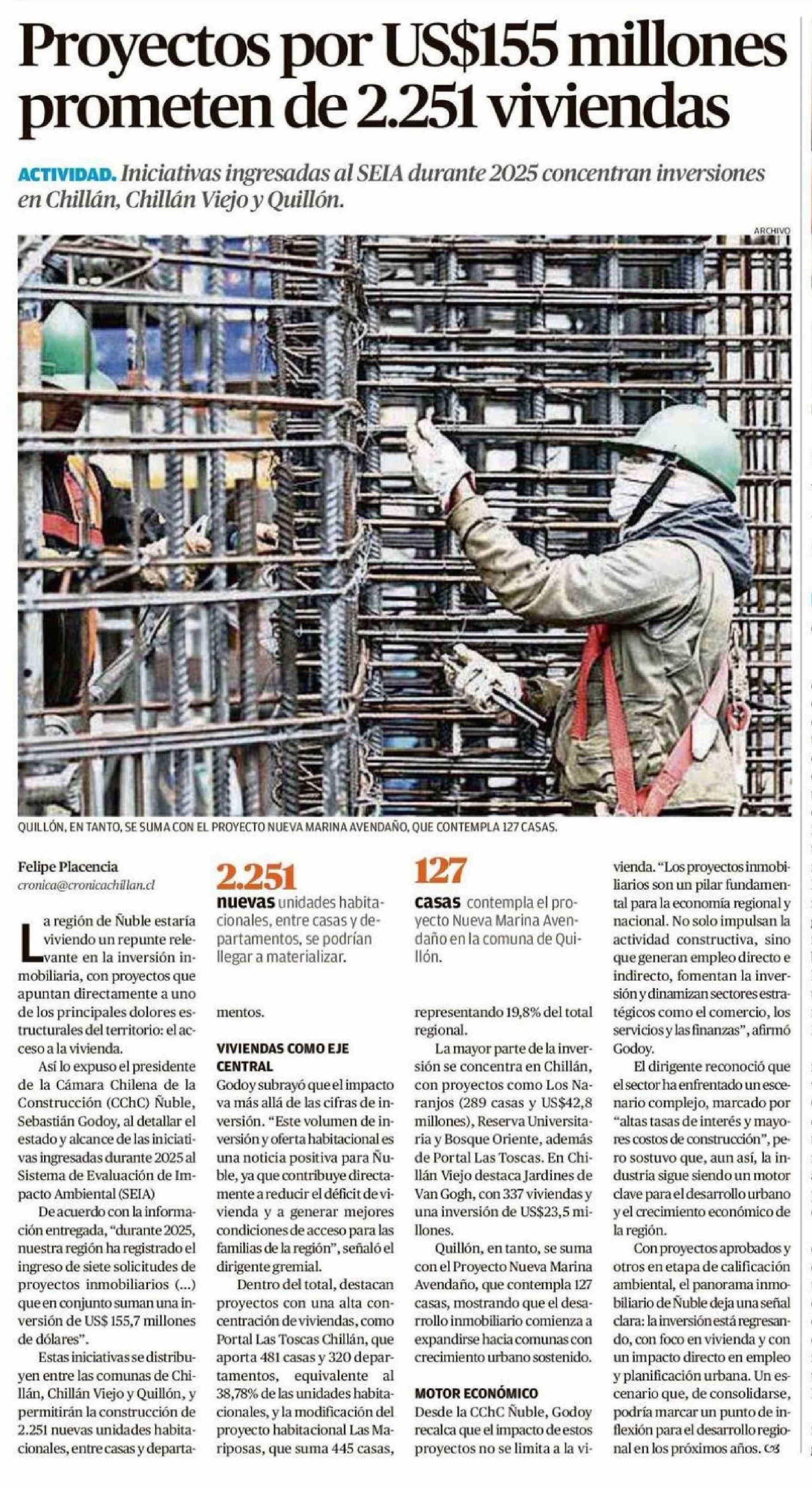 Título: Proyectos por US$155 millones prometen de 2.251 viviendas