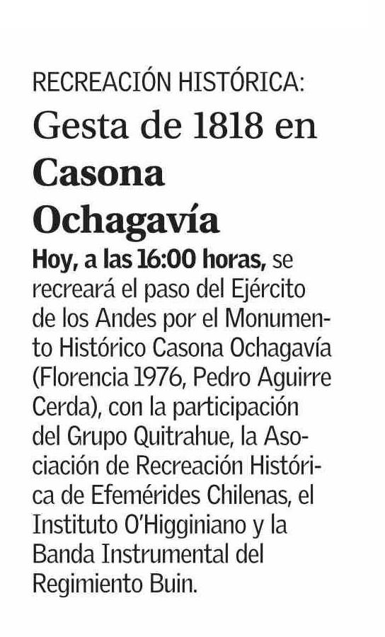 Gesta de 1818 en Casona Ochagavía 12-04-2025 El Mercurio |