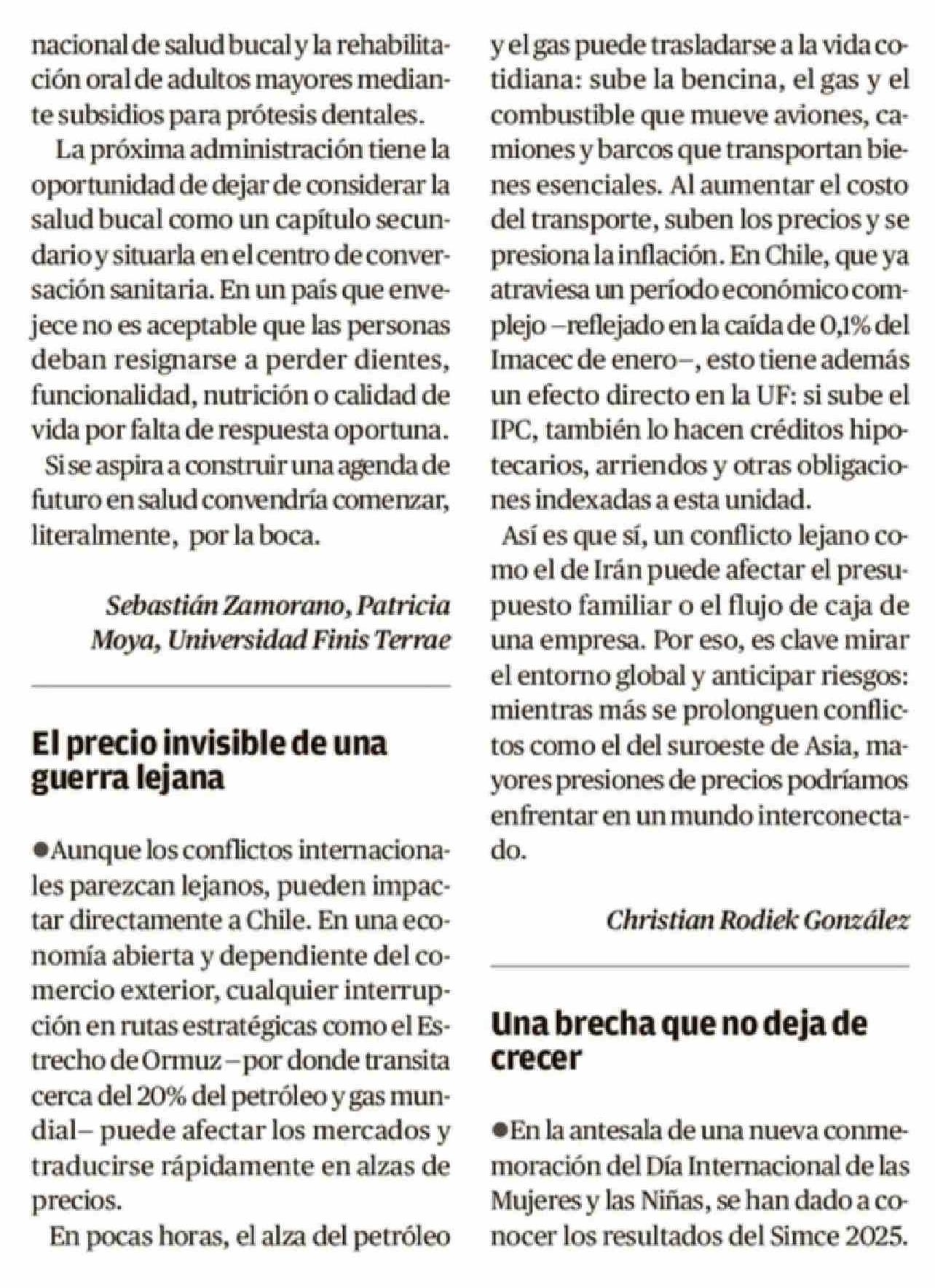 Cartas: El precio invisible de una guerra lejana 16-03-2026 El Austral de la Araucanía |