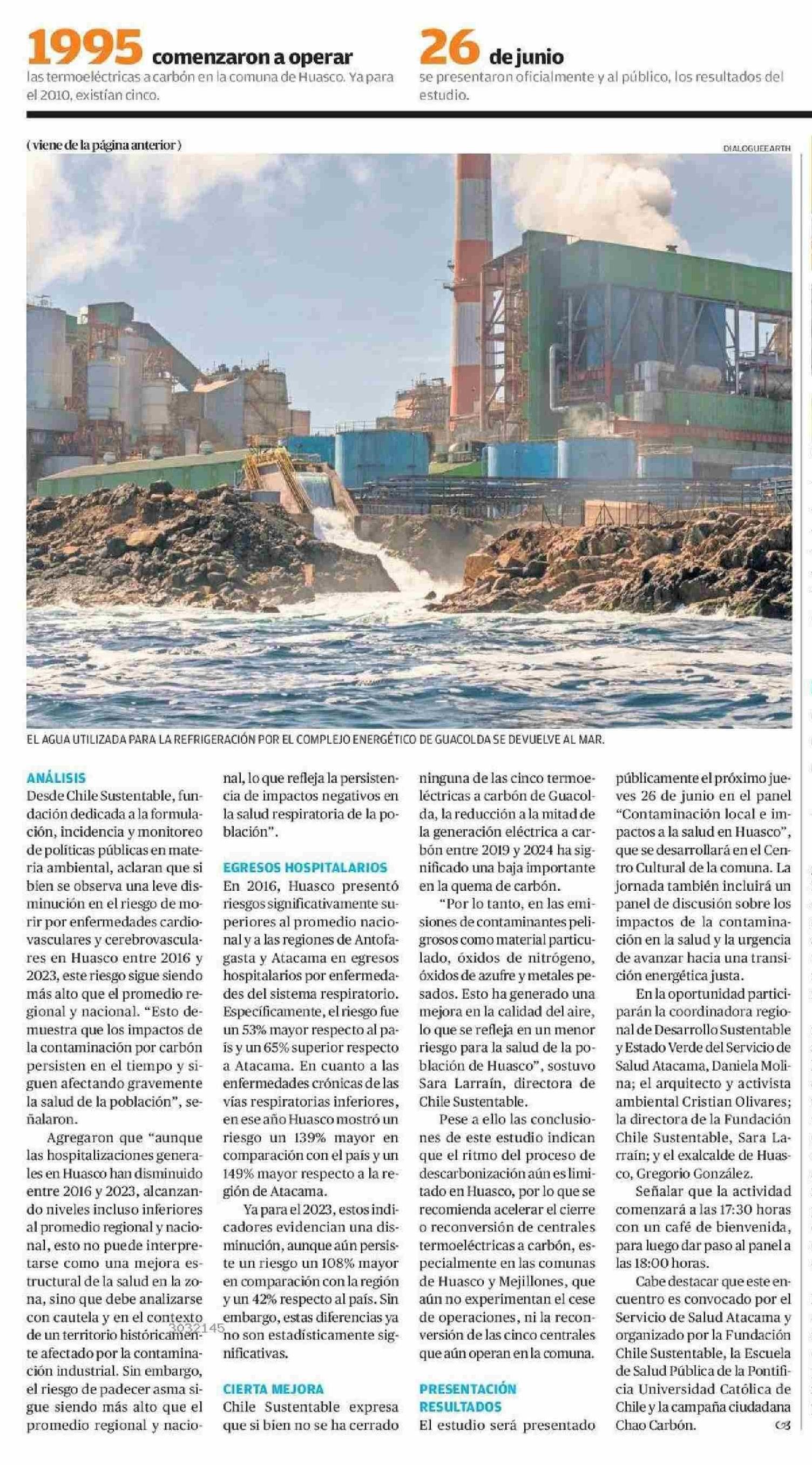 Huasco mantiene alta tasa de mortalidad por termoeléctricas a carbón 24-06-2025 El Diario de Atacama |