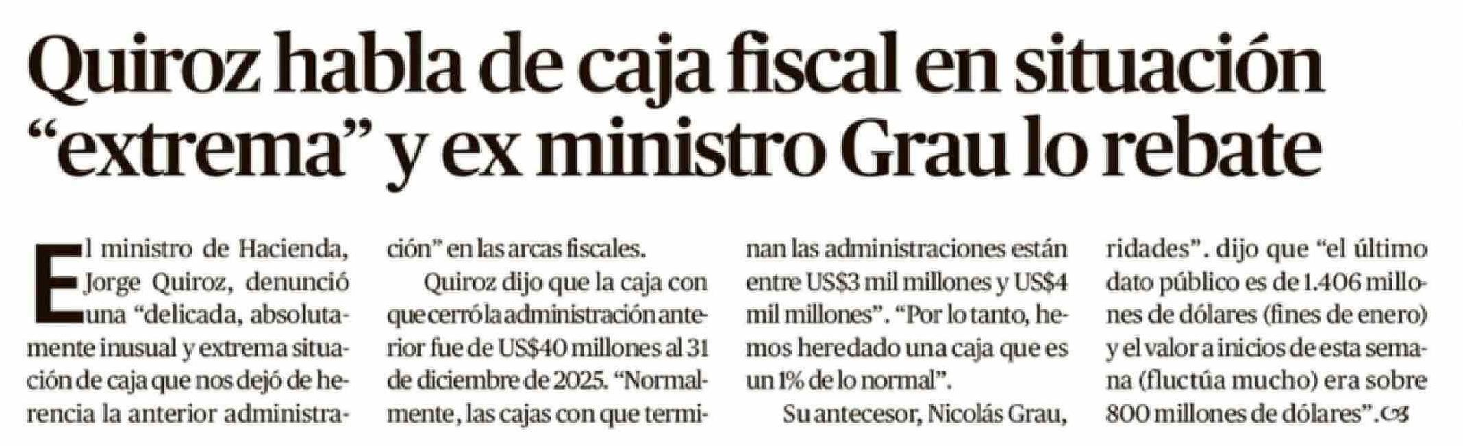 Quiroz habla de caja fiscal en situación "extrema" y ex ministro Grau lo rebate 14-03-2026 Crónica de Chillán |