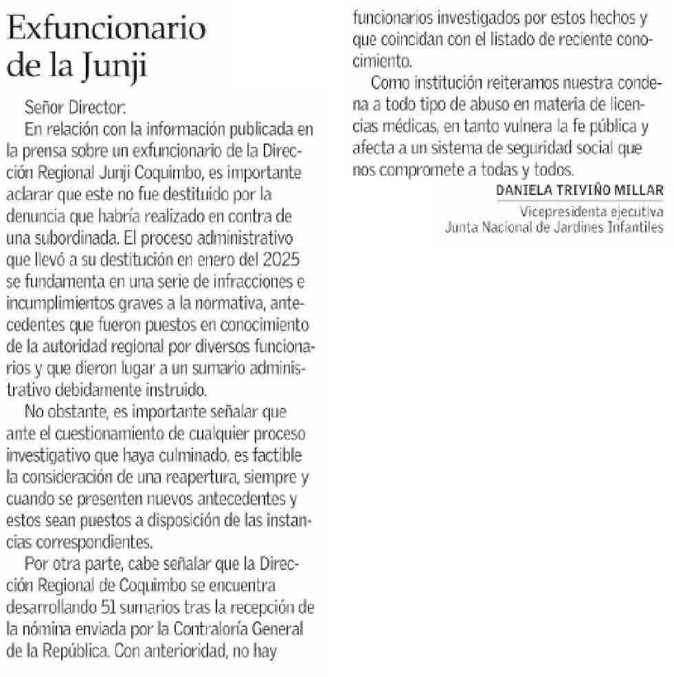 CARTAS: Exfuncionario de la Junji 29-05-2025 El Mercurio |