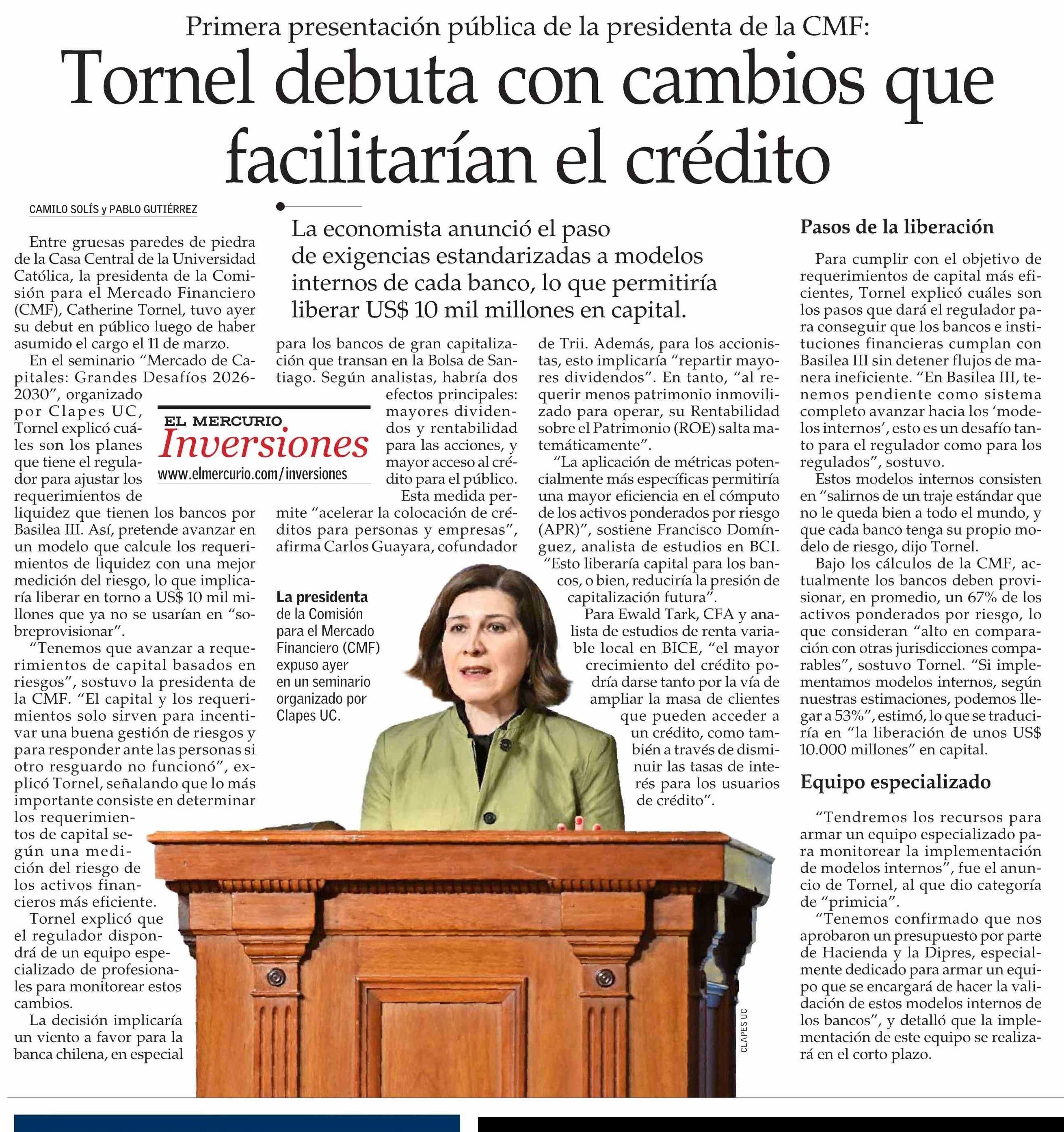 Tornel debuta con cambios que facilitarían el crédito 15-04-2026 El Mercurio |