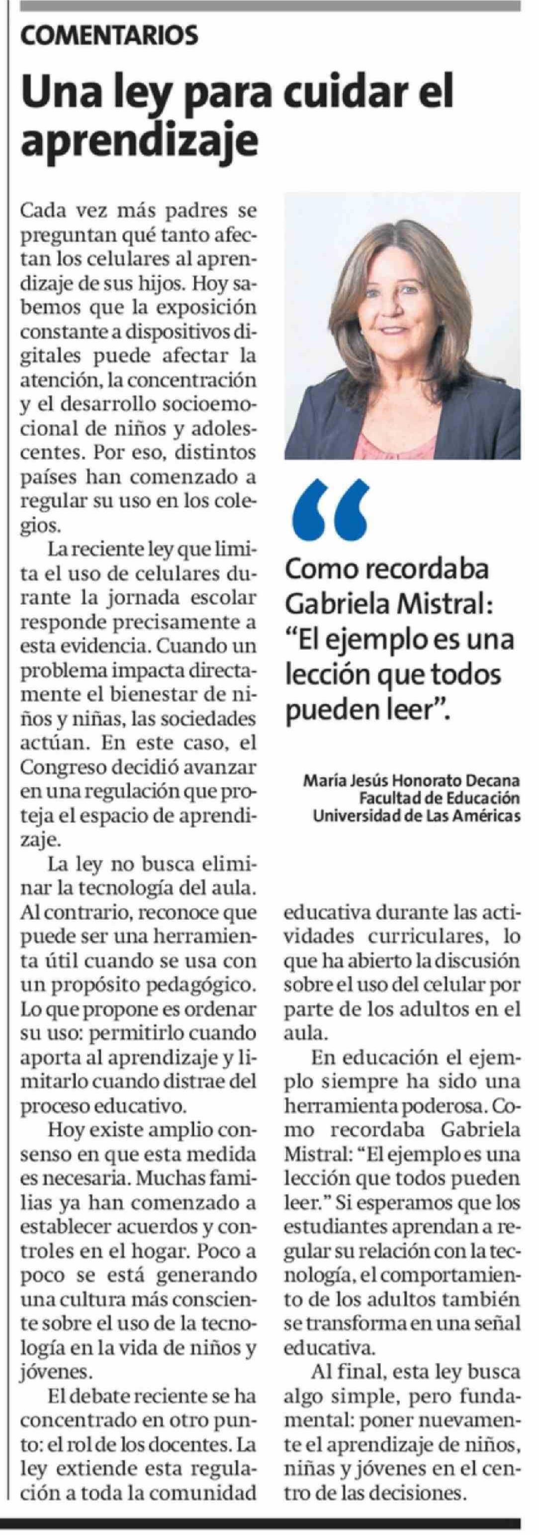 | Título: | Columnas de Opinión: Una ley para cuidar el aprendizaje |
