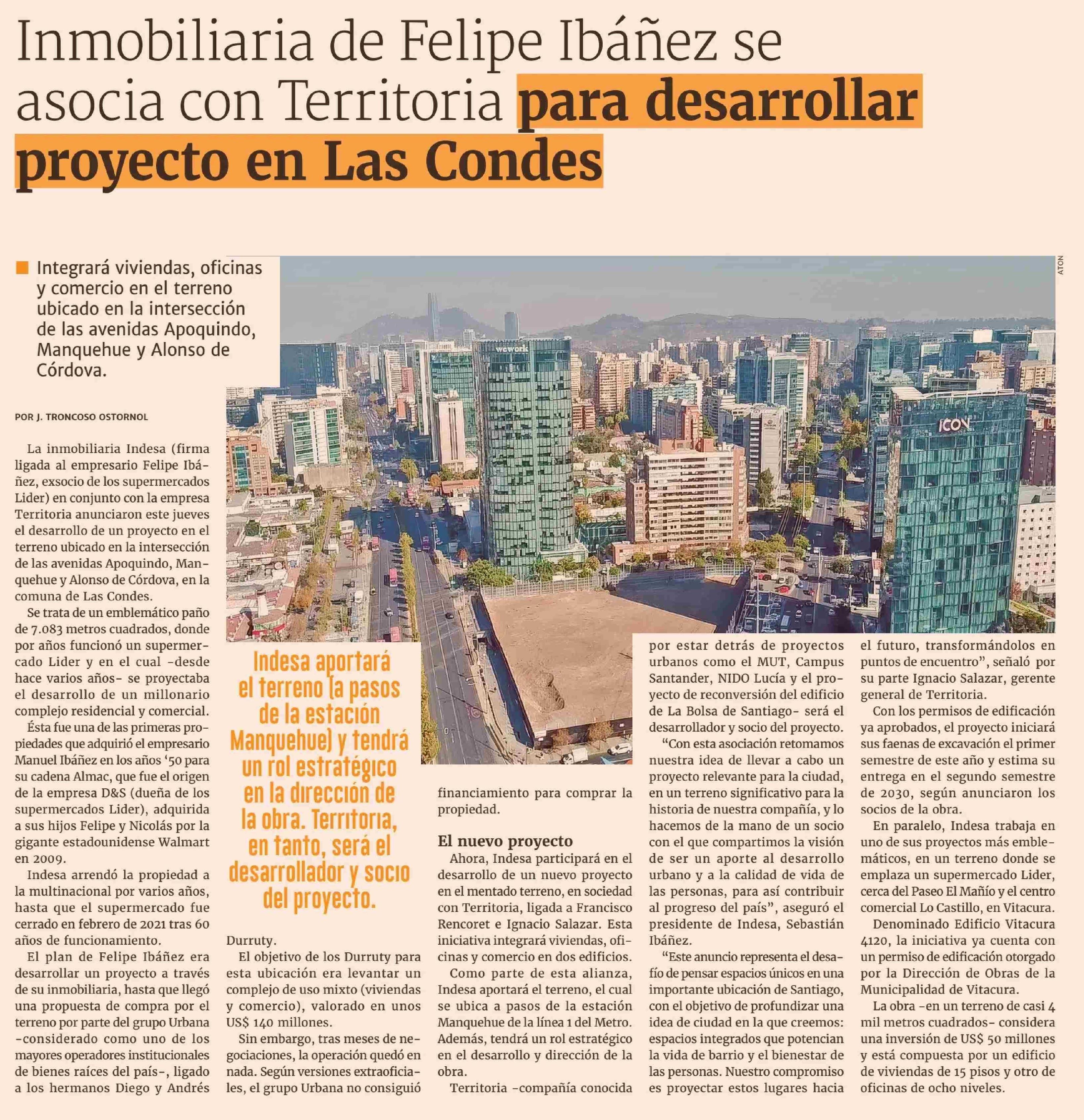 Inmobiliaria de Felipe Ibáñez se asocia con Territoria para desarrollar proyecto en Las Condes 16-01-2026 Diario Financiero |