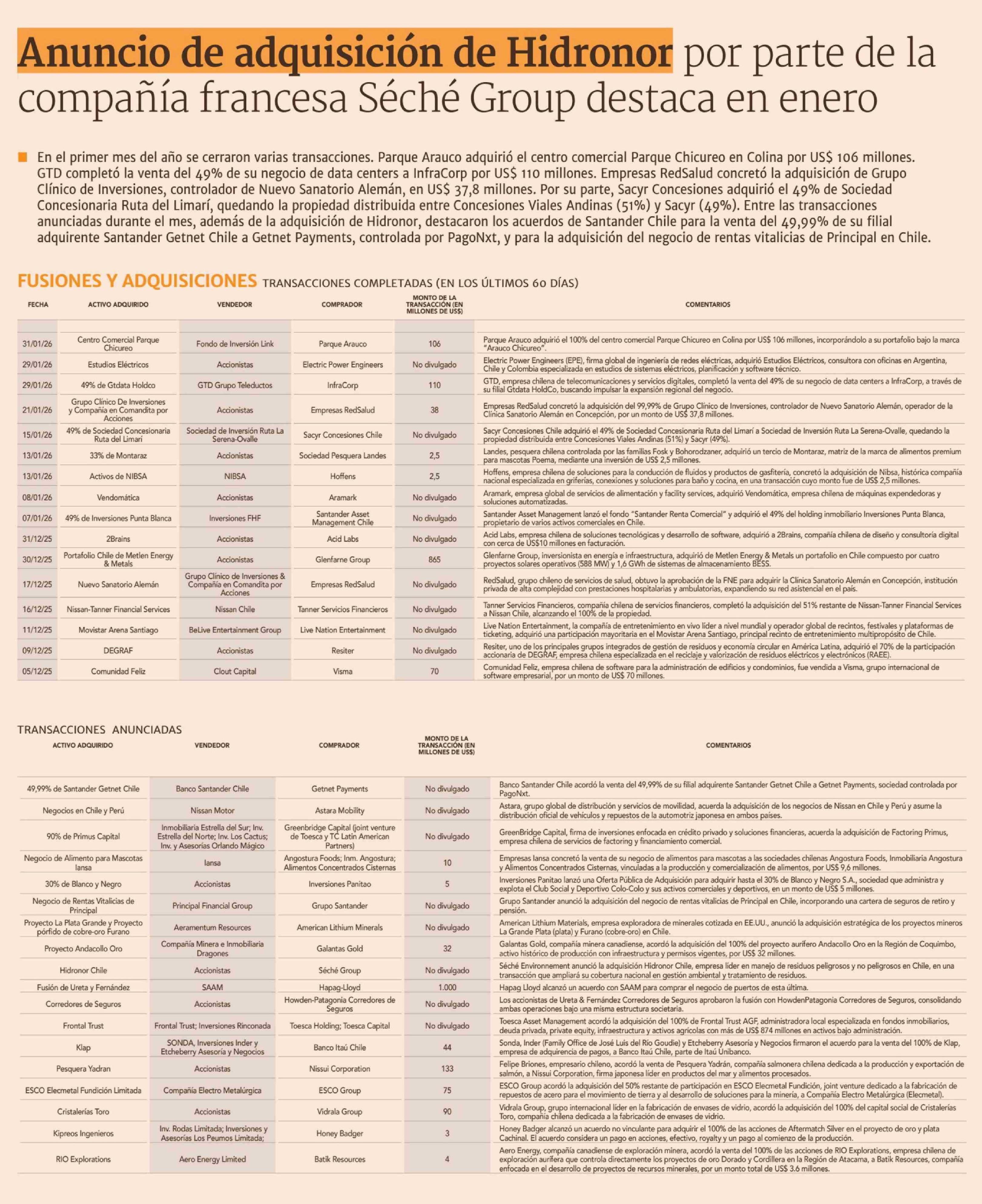 Título: Anuncio de adquisición de Hidronor por parte de la compañía francesa Séché Group destaca en enero