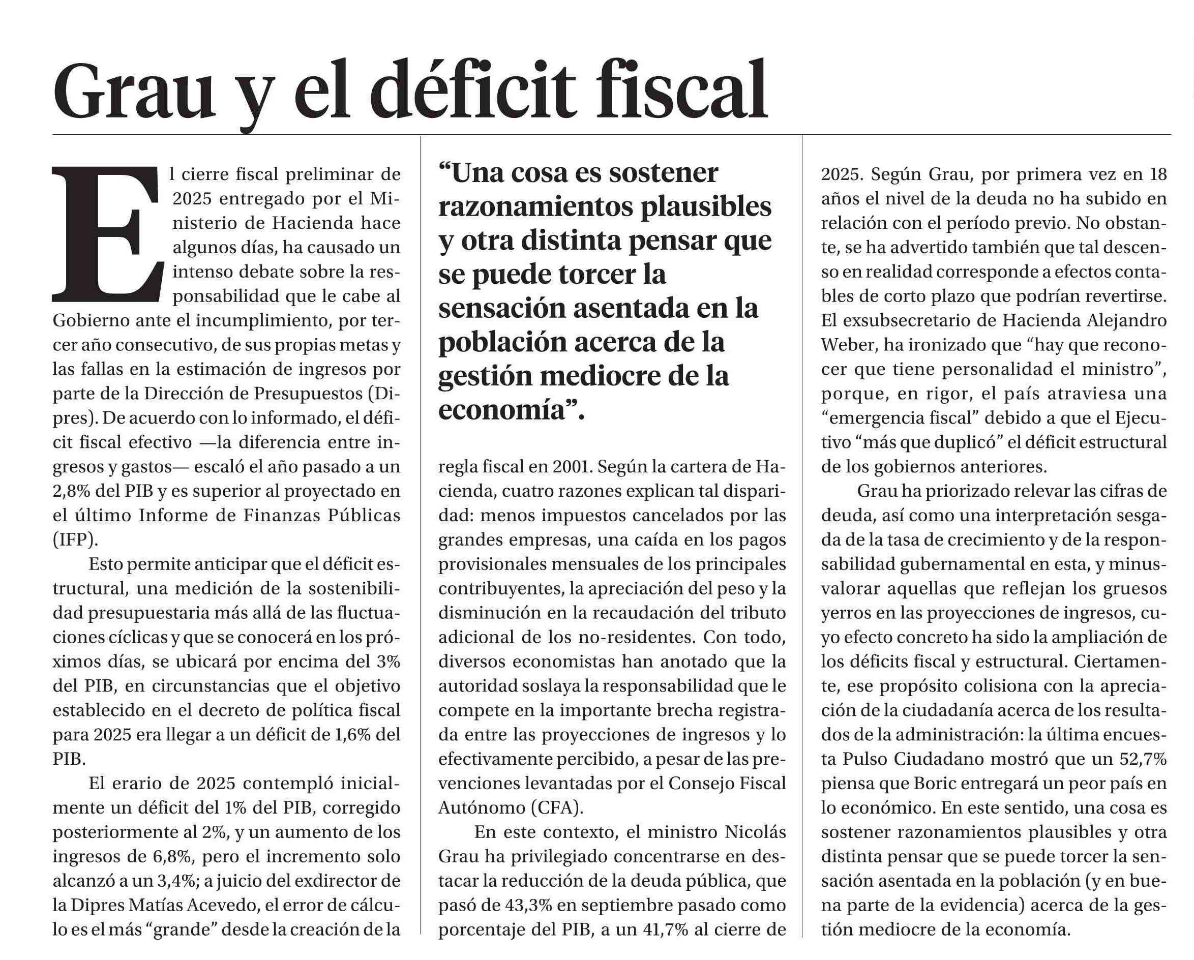 EDITORIAL: Grau y el déficit fiscal 06-02-2026 La Segunda |