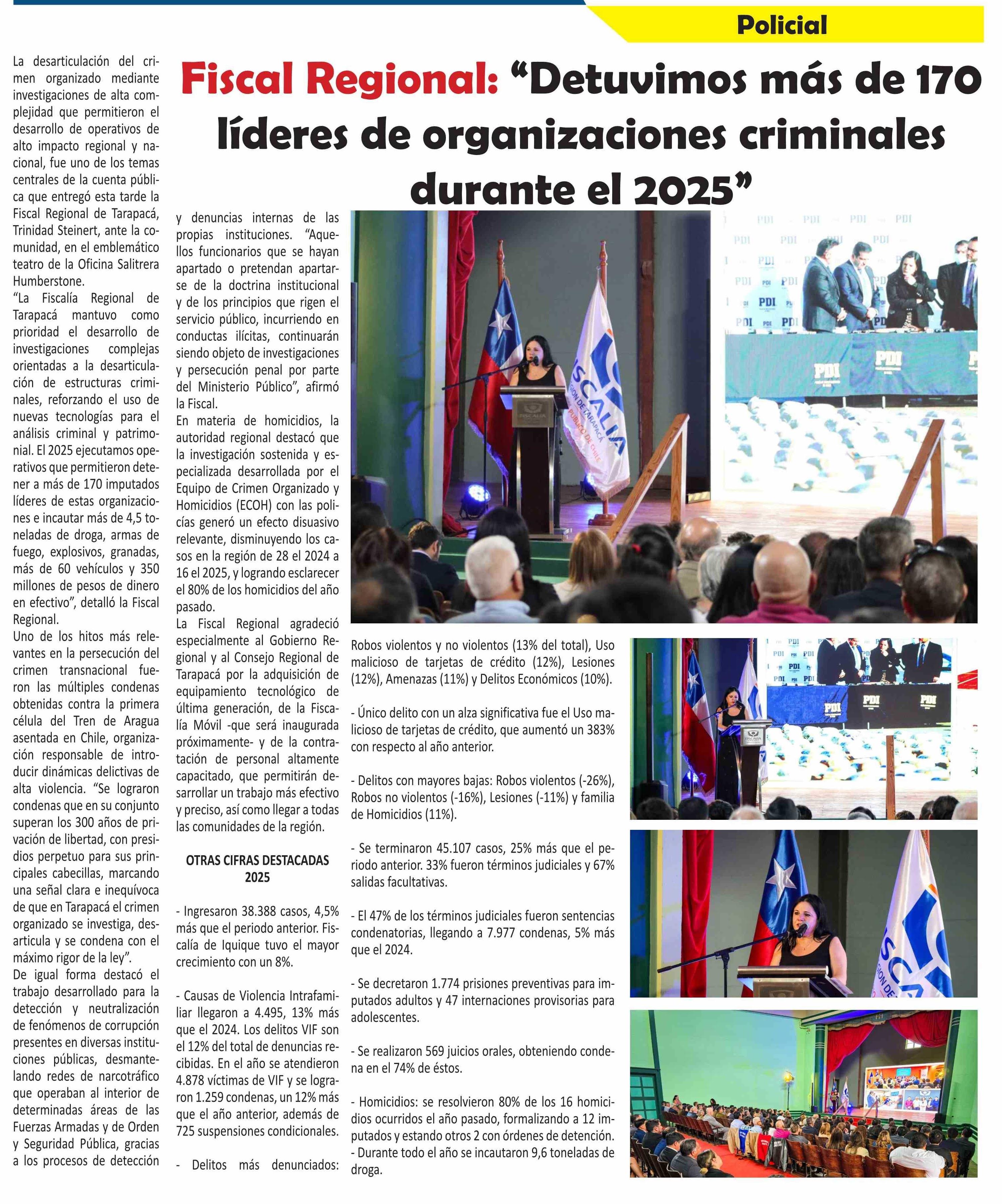 | Título: | Fiscal Regional: "Detuvimos más de 170 líderes de organizaciones criminales durante el 2025" |