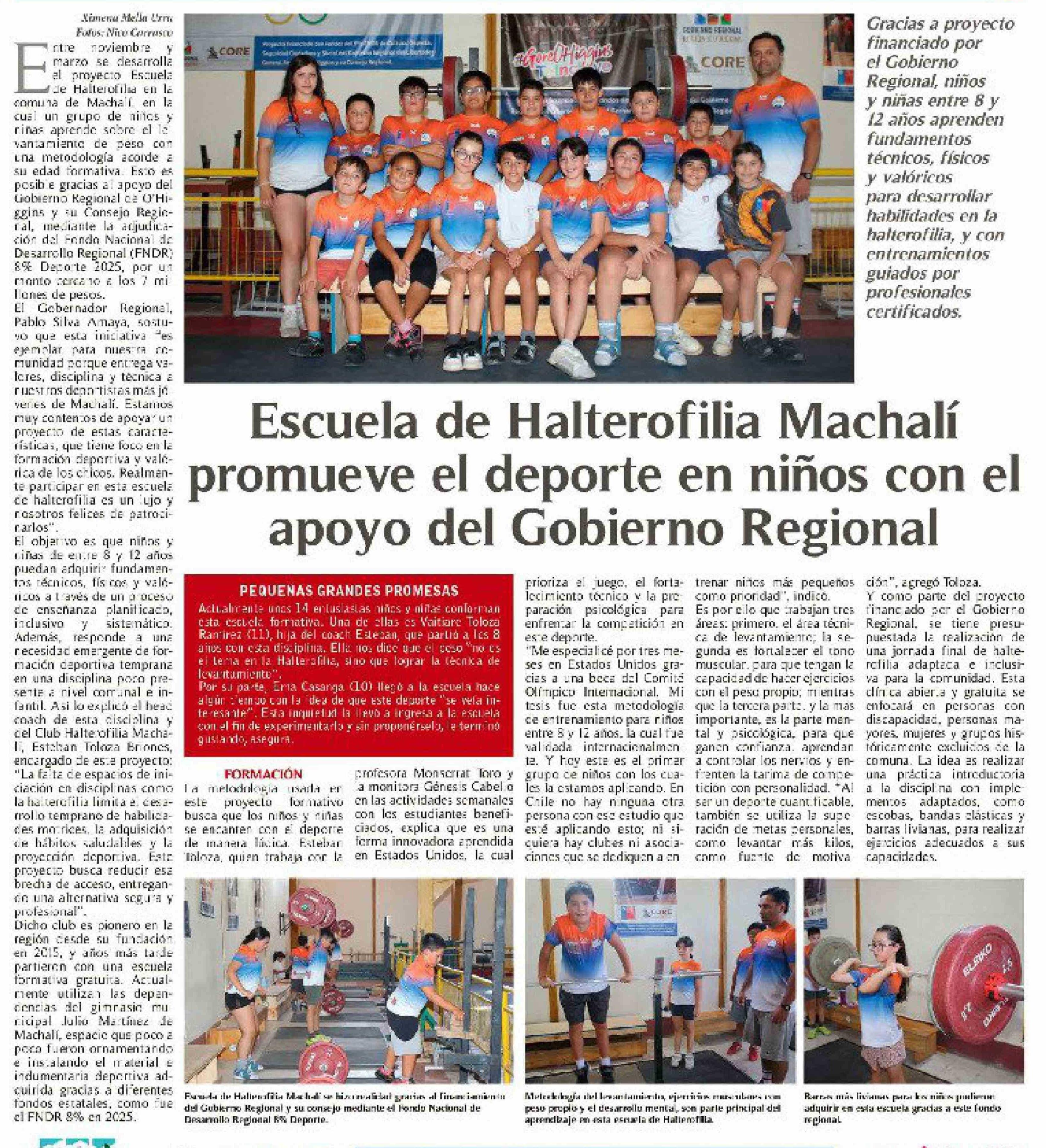 Título: Escuela de Halterofilia Machalí promueve el deporte en niños con el apoyo del Gobierno Regional