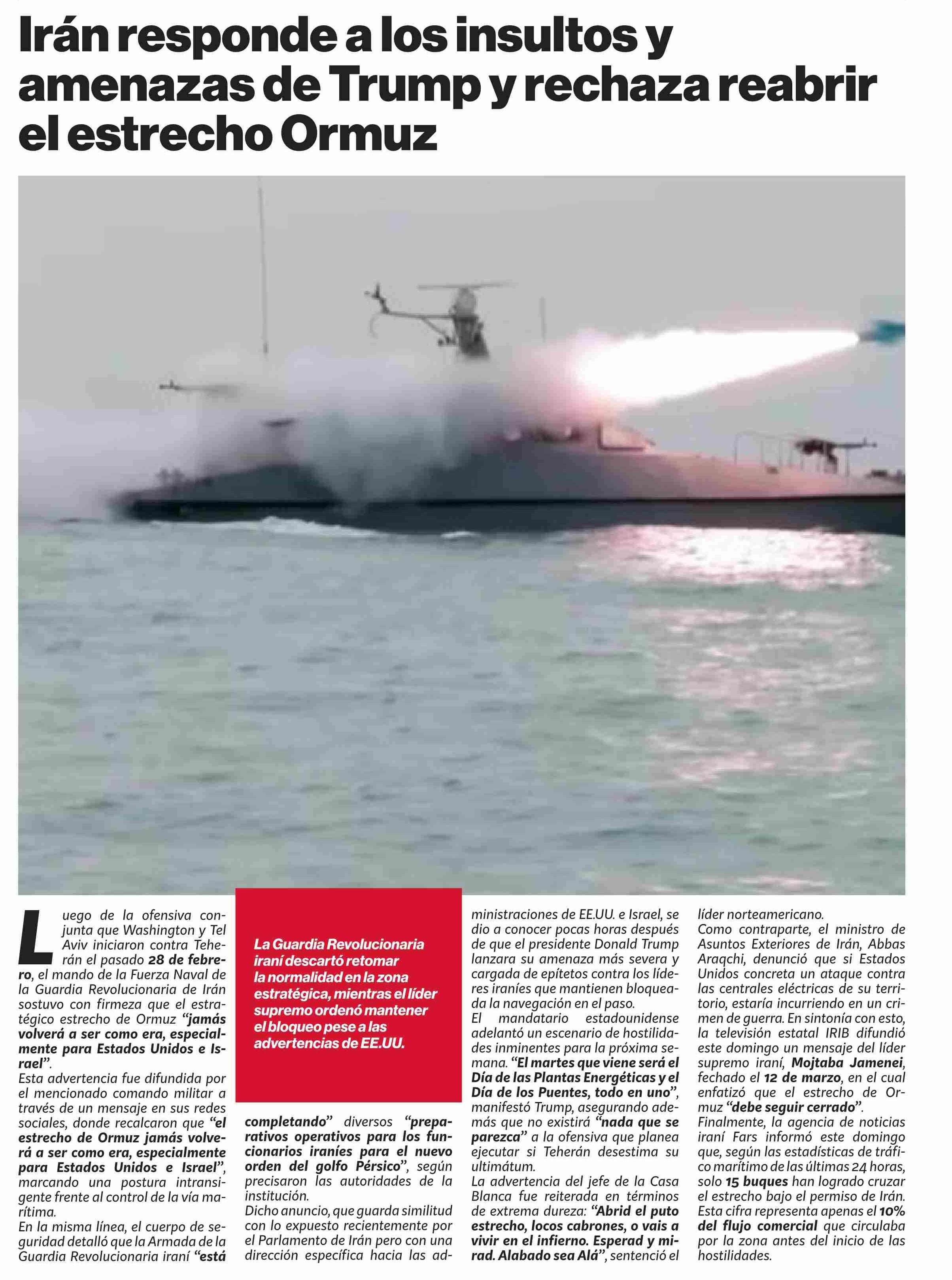| Título: | Irán responde alos insultos y amenazas de Trump y rechaza reabrir el estrecho Ormuz |
