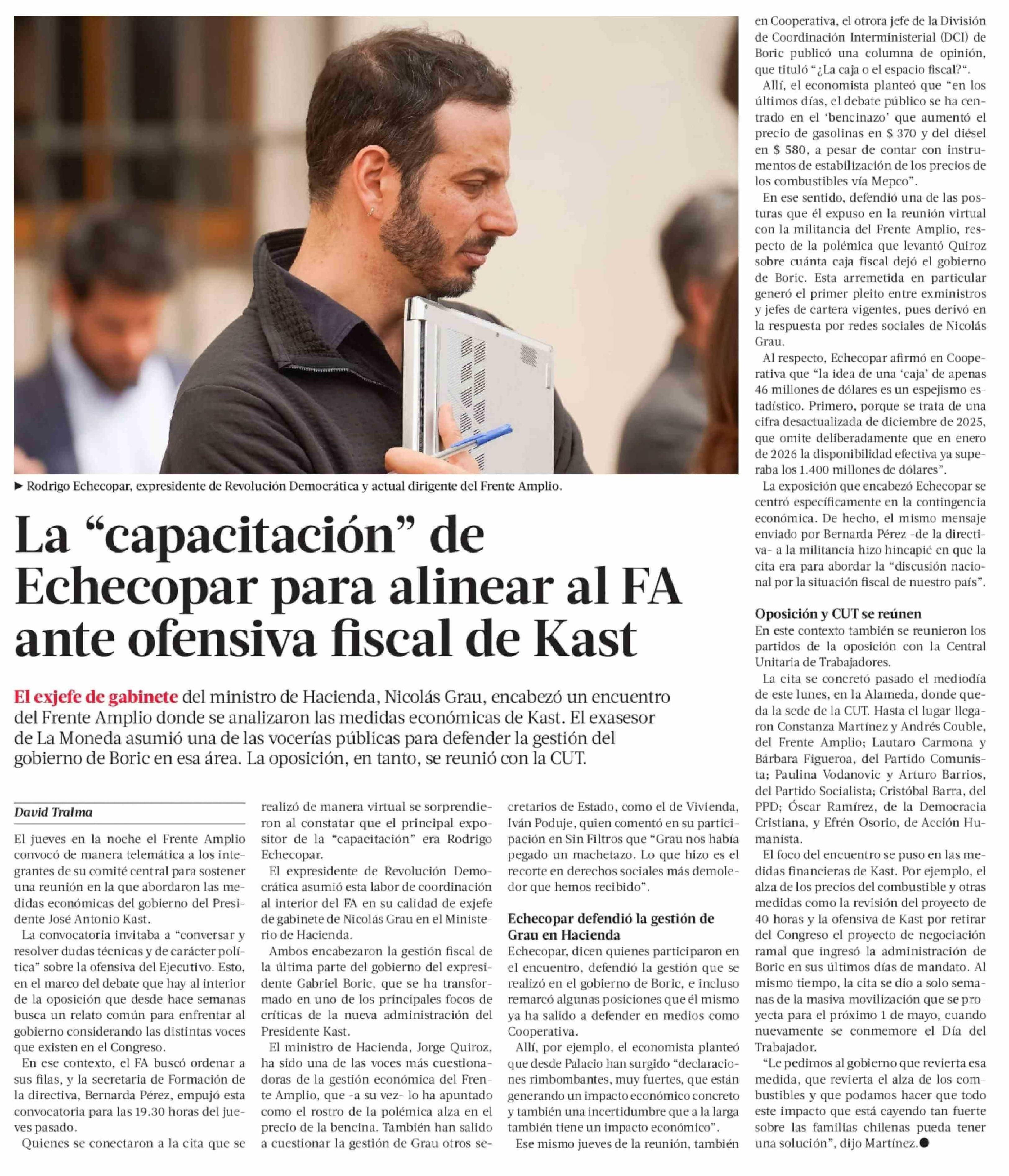 Título: La "capacitación" de Echecopar para alinear al FA ante ofensiva fiscal de Kast