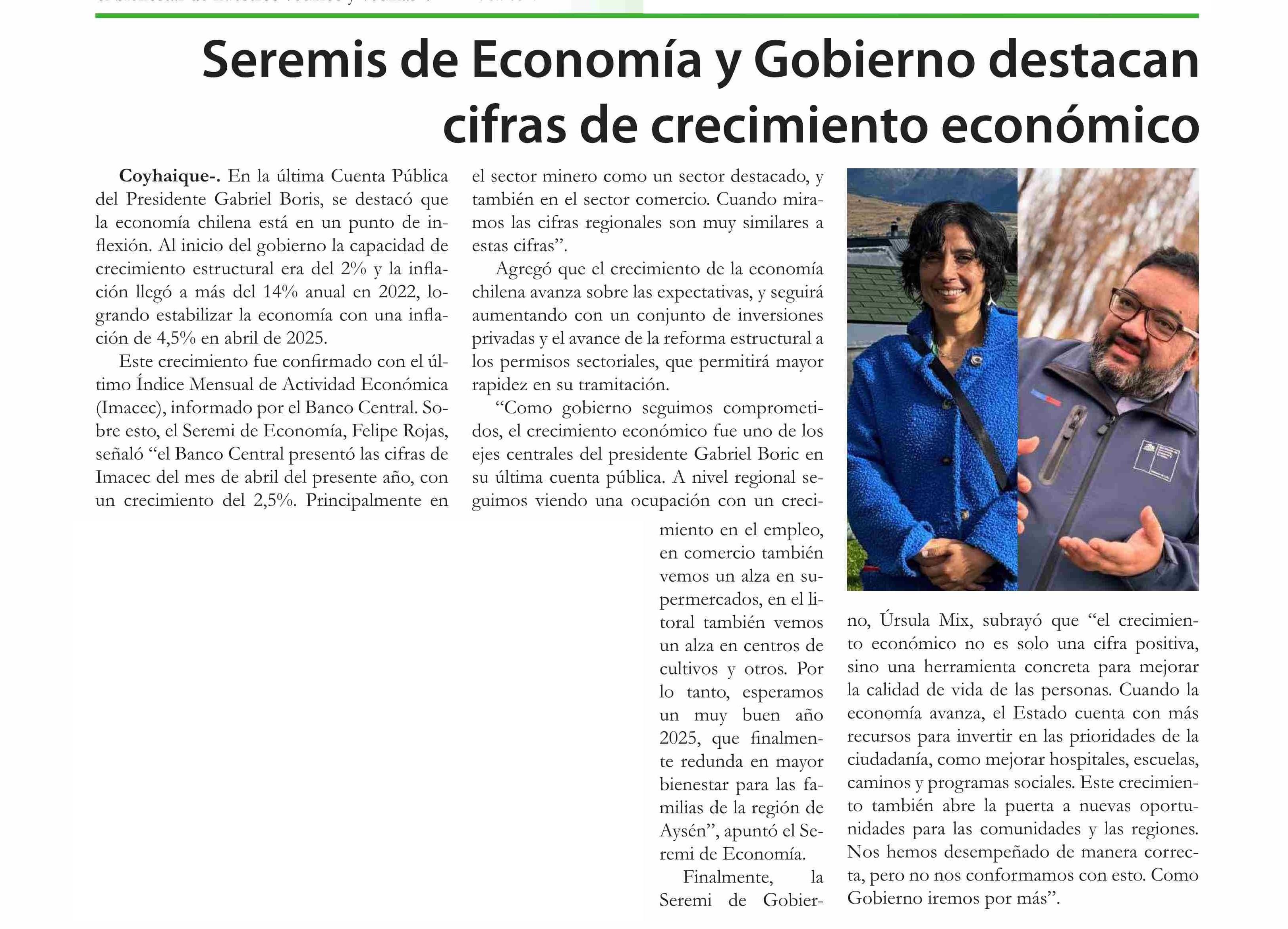 Seremis de Economía y Gobierno destacan cifras de crecimiento económico 06-06-2025 El Divisadero |
