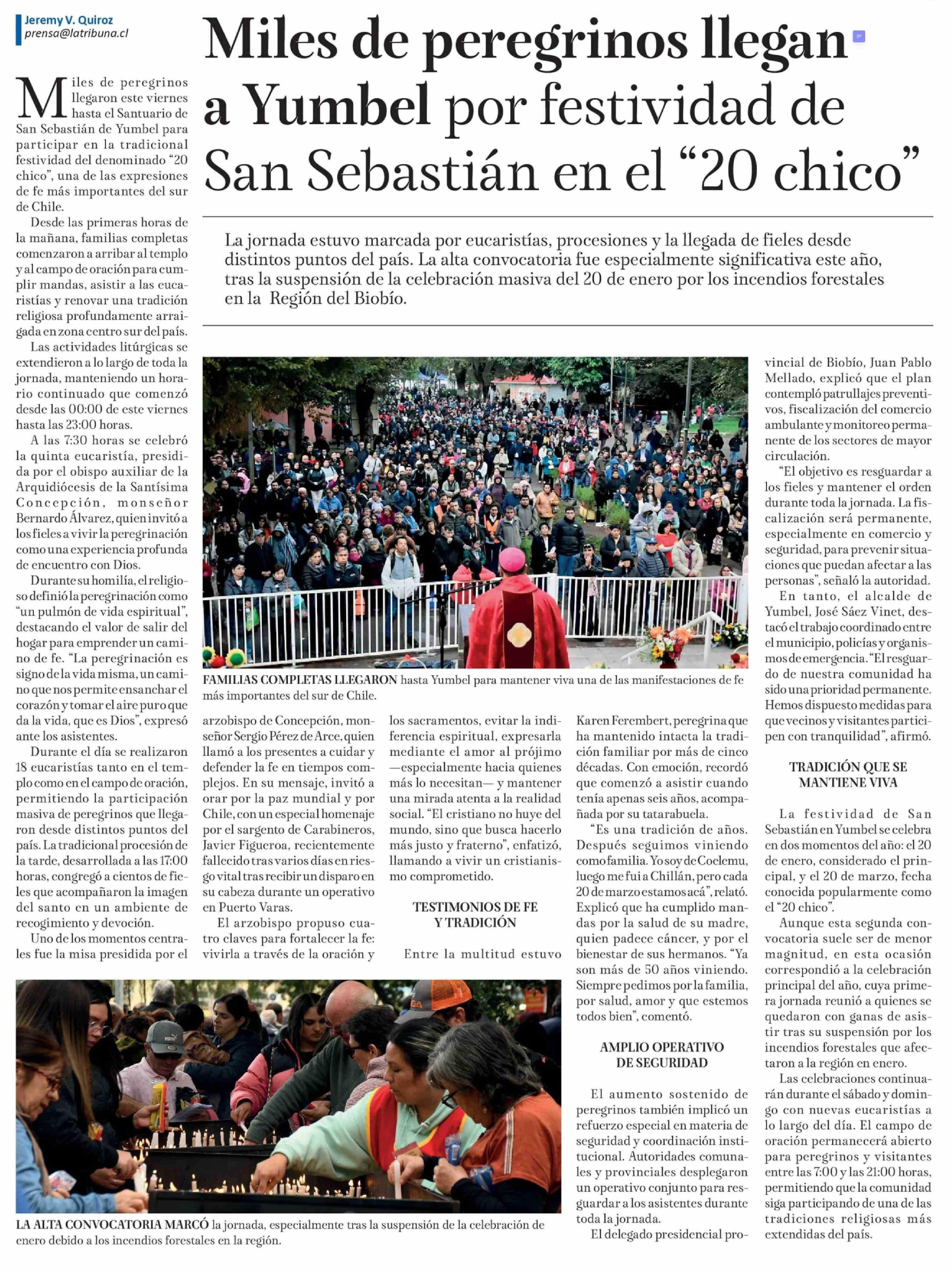 | Título: | Miles de peregrinos llegan a Yumbel por festividad de San Sebastián en el "20 chico" |