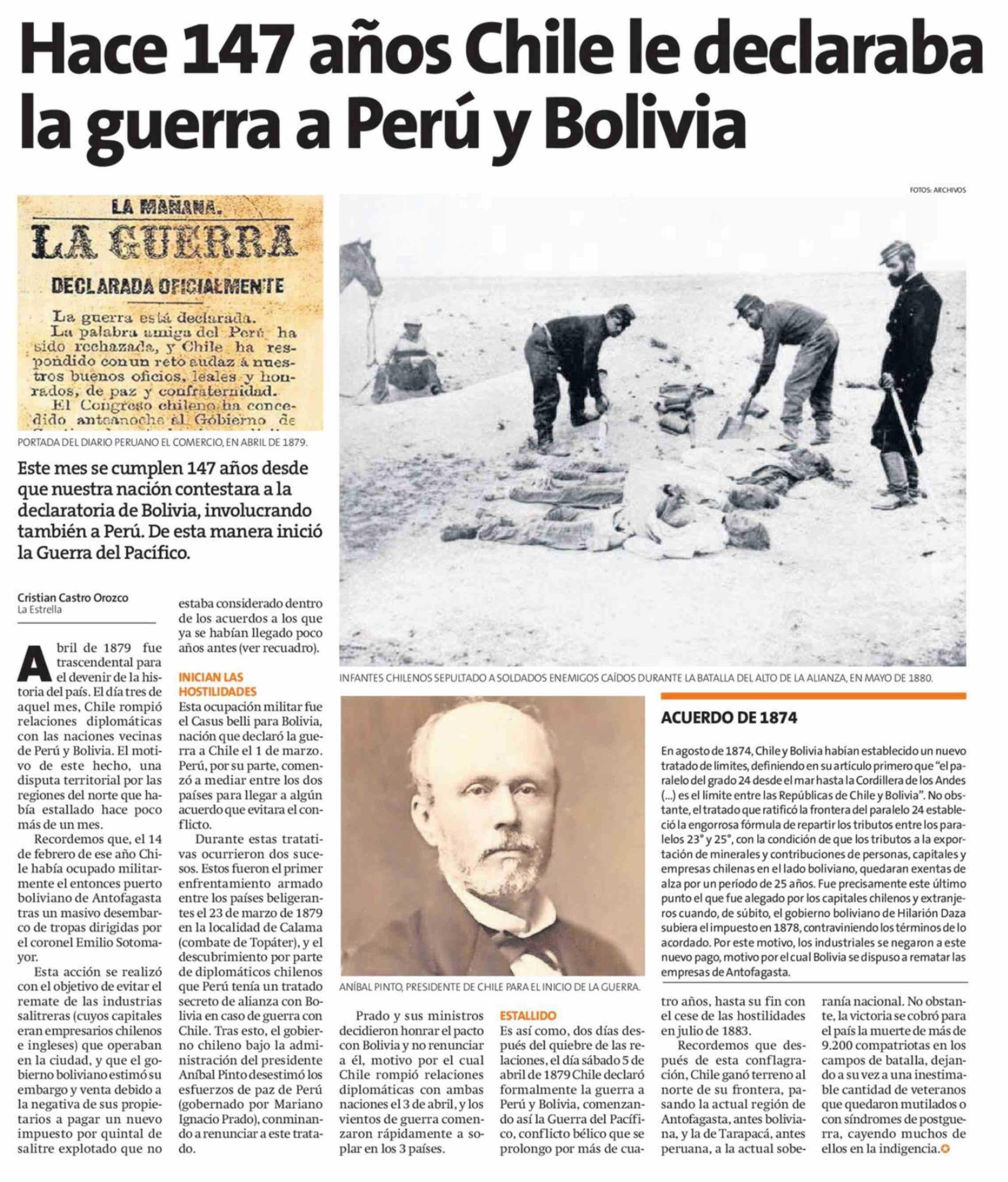 Hace 147 años Chile le declaraba la guerra a Perú y Bolivia 06-04-2026 La Estrella de Antofagasta |