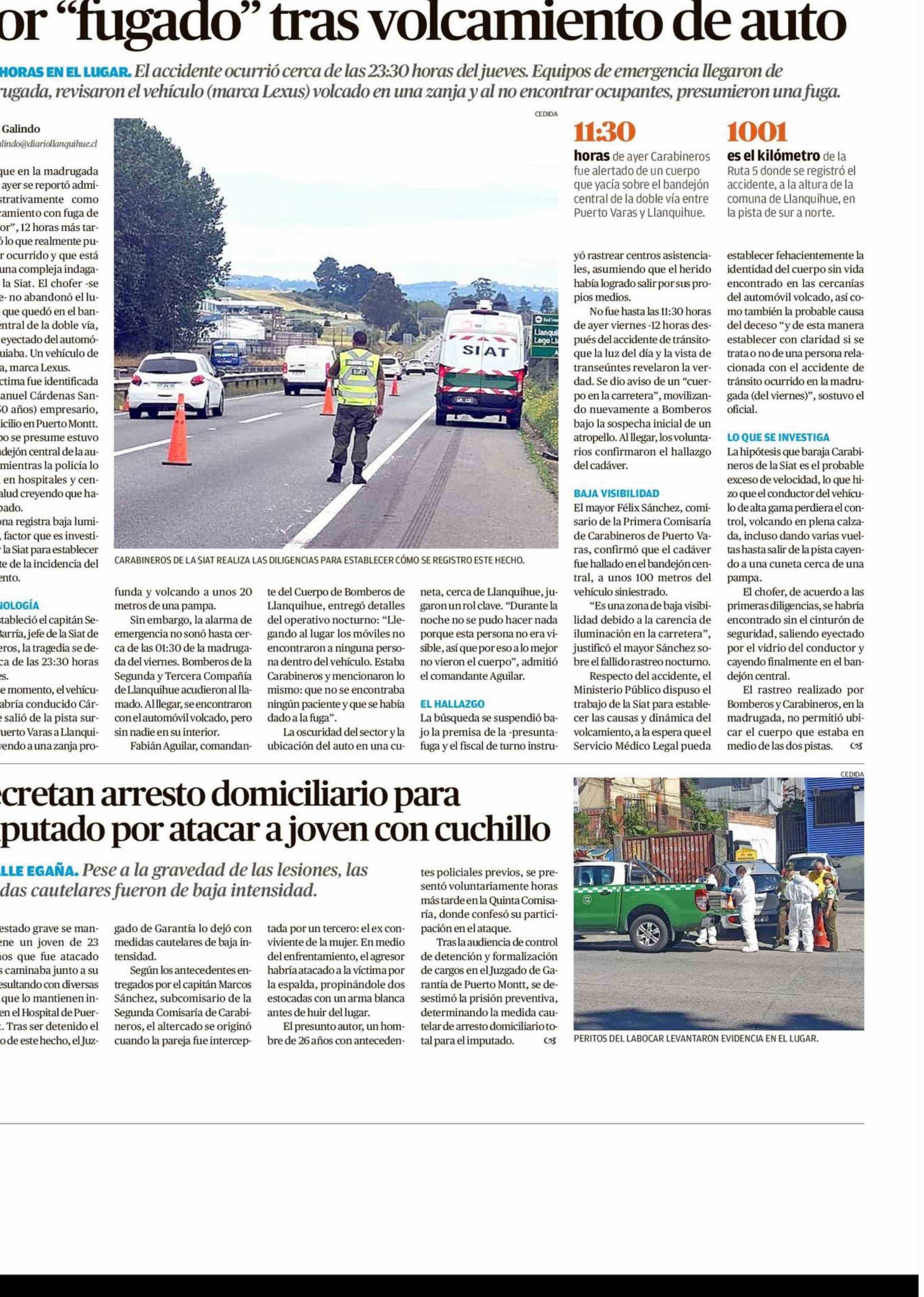 Hallan muerto a conductor que dieron por "fugado" tras volcamiento de auto 31-01-2026 El Austral de Osorno |