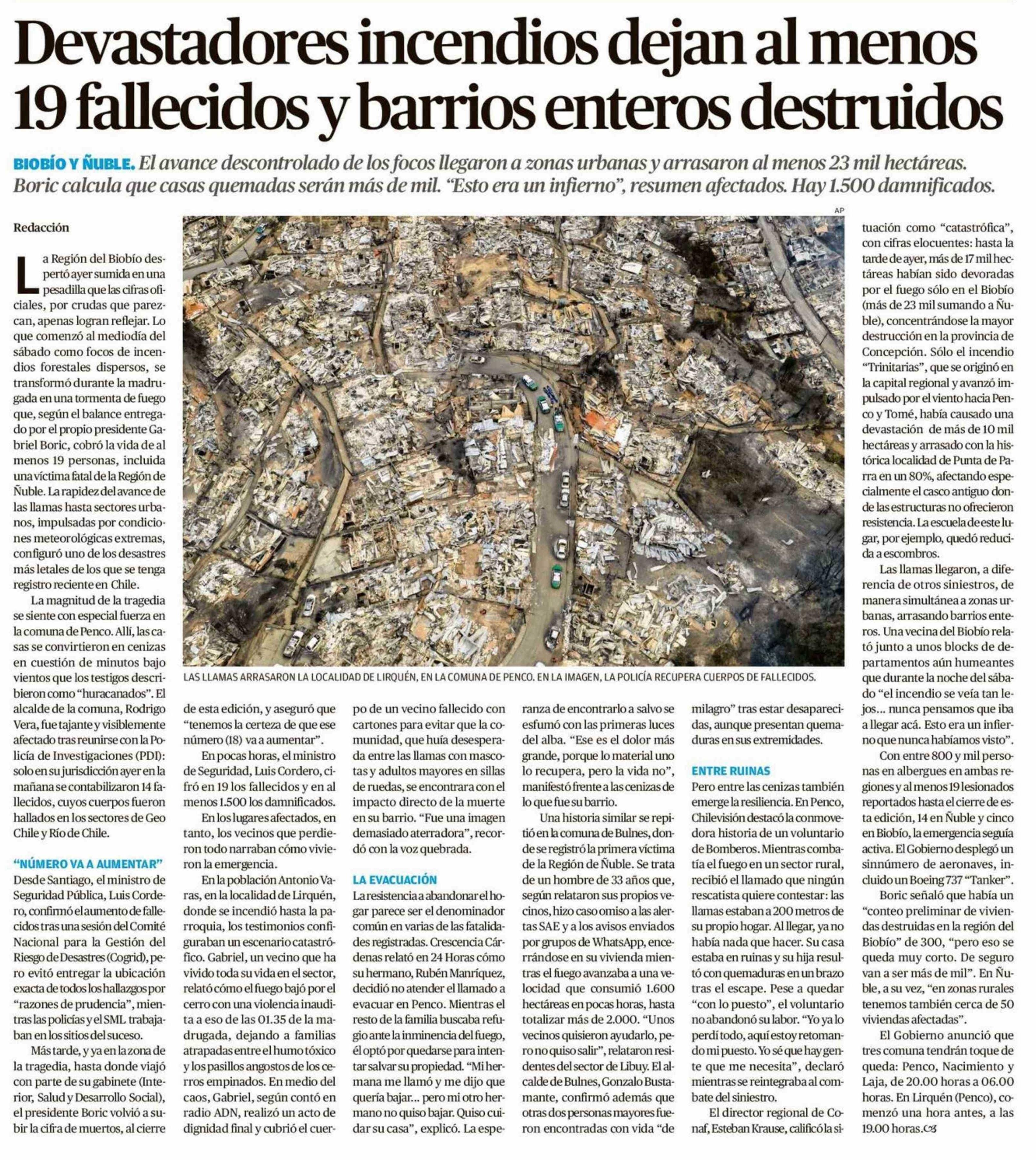 Devastadores incendios dejan al menos 19 fallecidos y barrios enteros destruidos 19-01-2026 El Austral de Osorno |