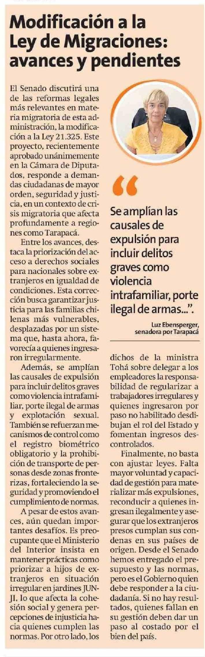 Modificación a la Ley de Migraciones: avances y pendientes 01-12-2024 La Estrella de Iquique |