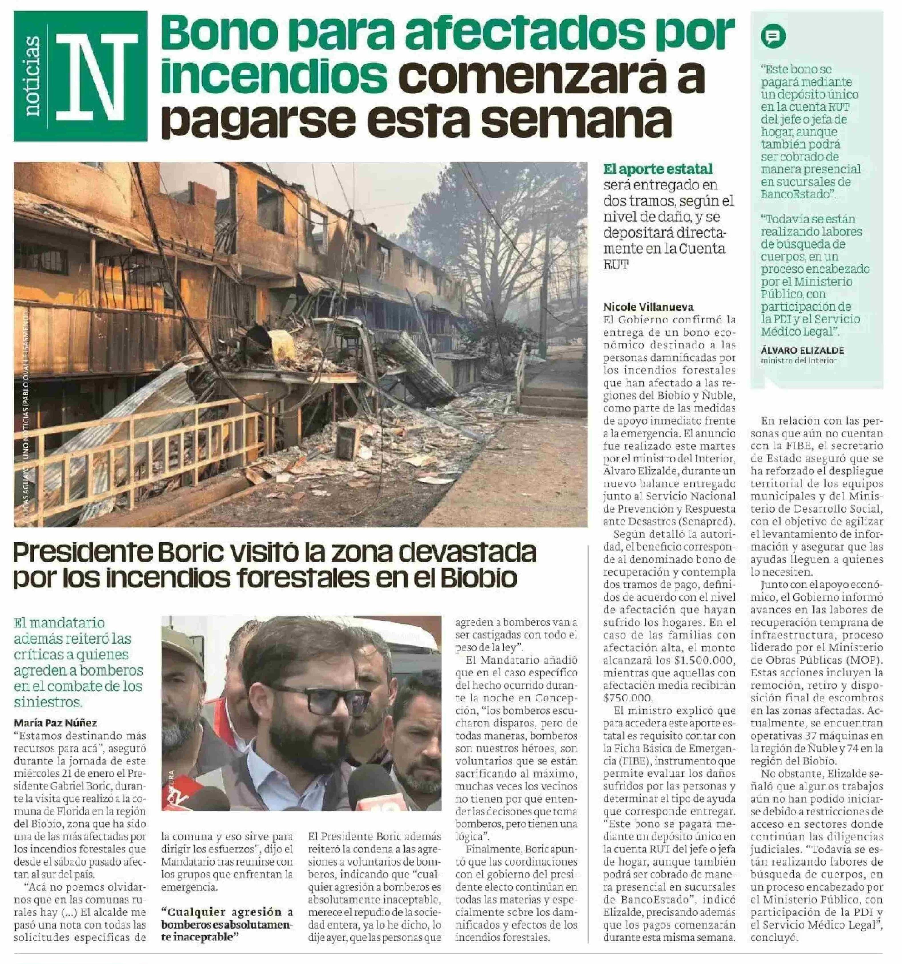 Bono para afectados por incendios comenzara a N pagarse esta semana 22-01-2026 Publimetro |