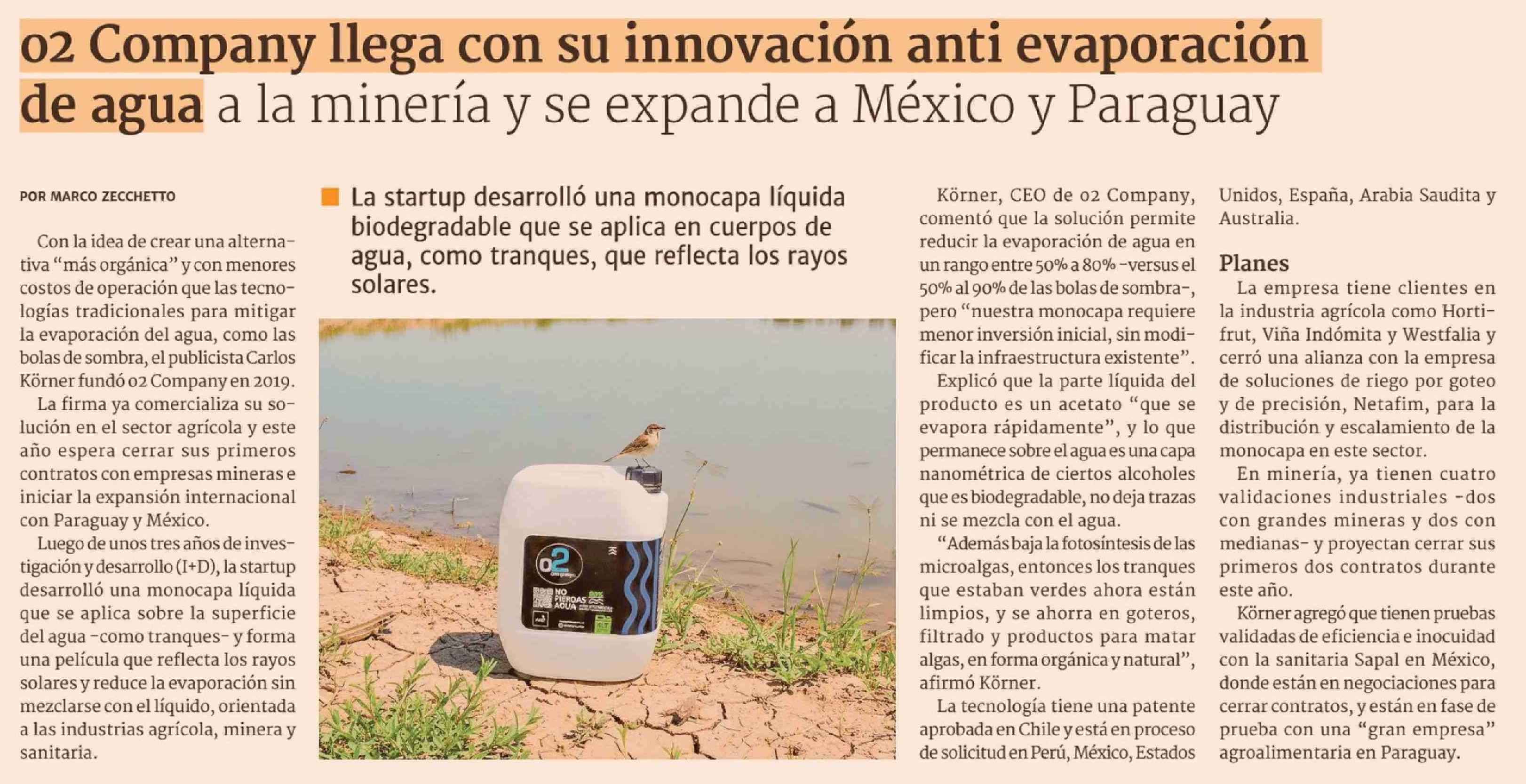 Título: 02 Company llega con su innovación anti evaporación de agua a la minería y se expande a México y Paraguay