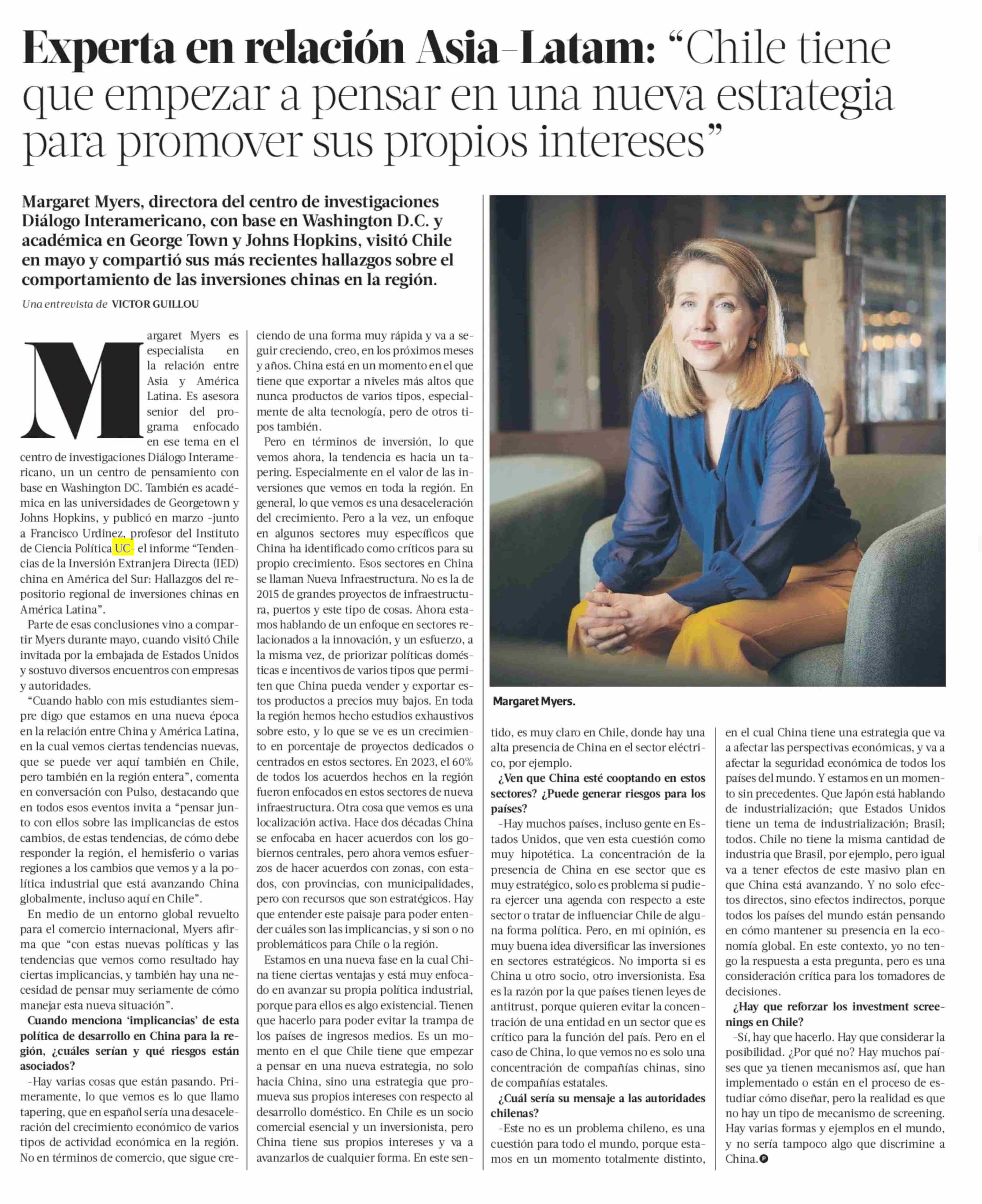 Experta en relación Asia Latam: *Chile tiene que empezar a pensar en una nueva estrategia para promover sus propios intereses” 24-05-2025 La Tercera |