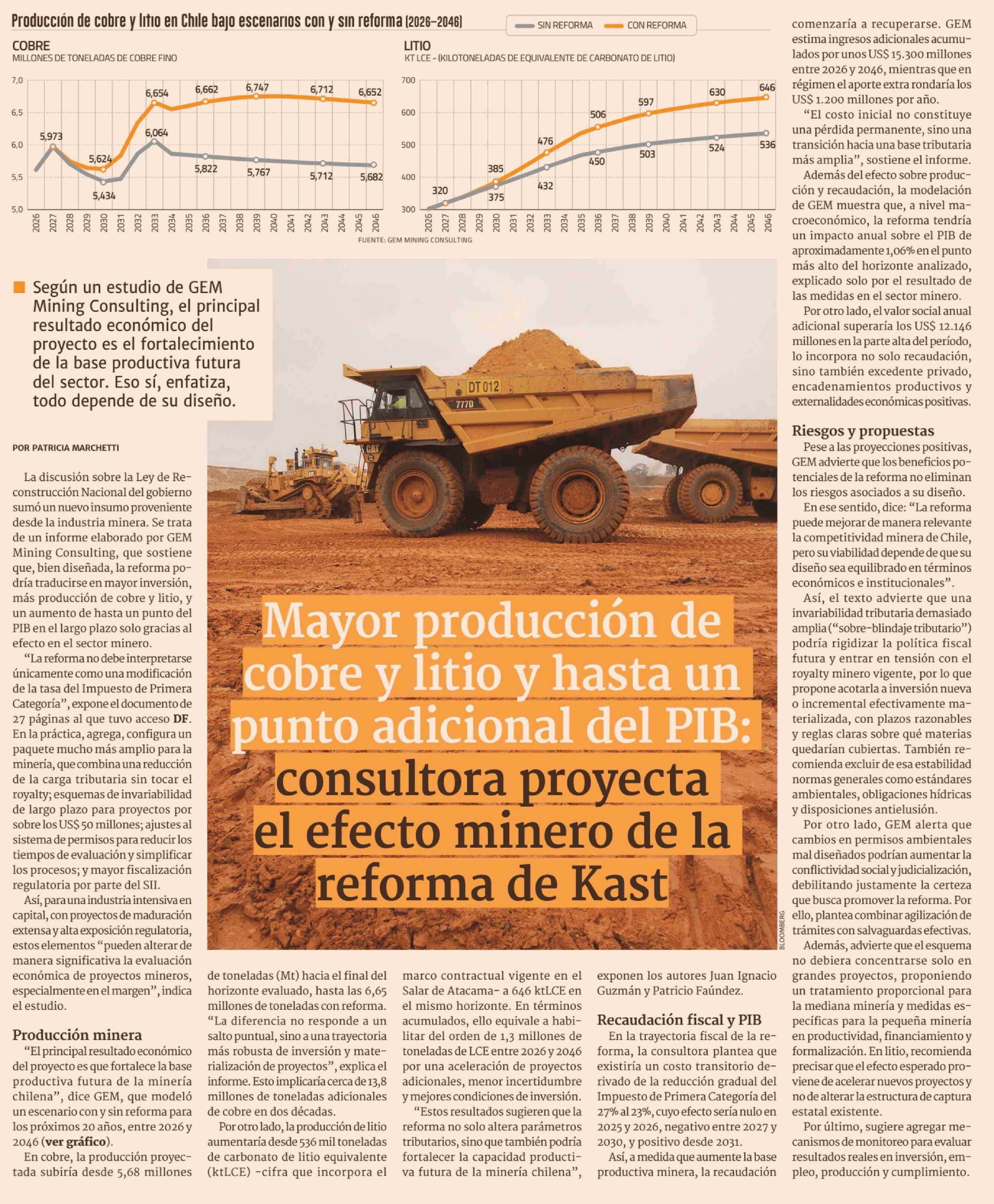 Mayor producción de cobre y litio y hasta un punto adicional del PIB: consultora proyecta el efecto minero de la reforma de Kast 28-04-2026 Diario Financiero |
