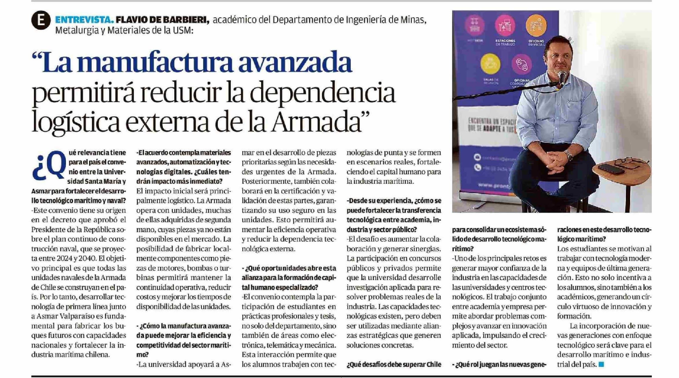 Título: “La manufactura avanzada permitirá reducir la dependencia logística externa de la Armada”