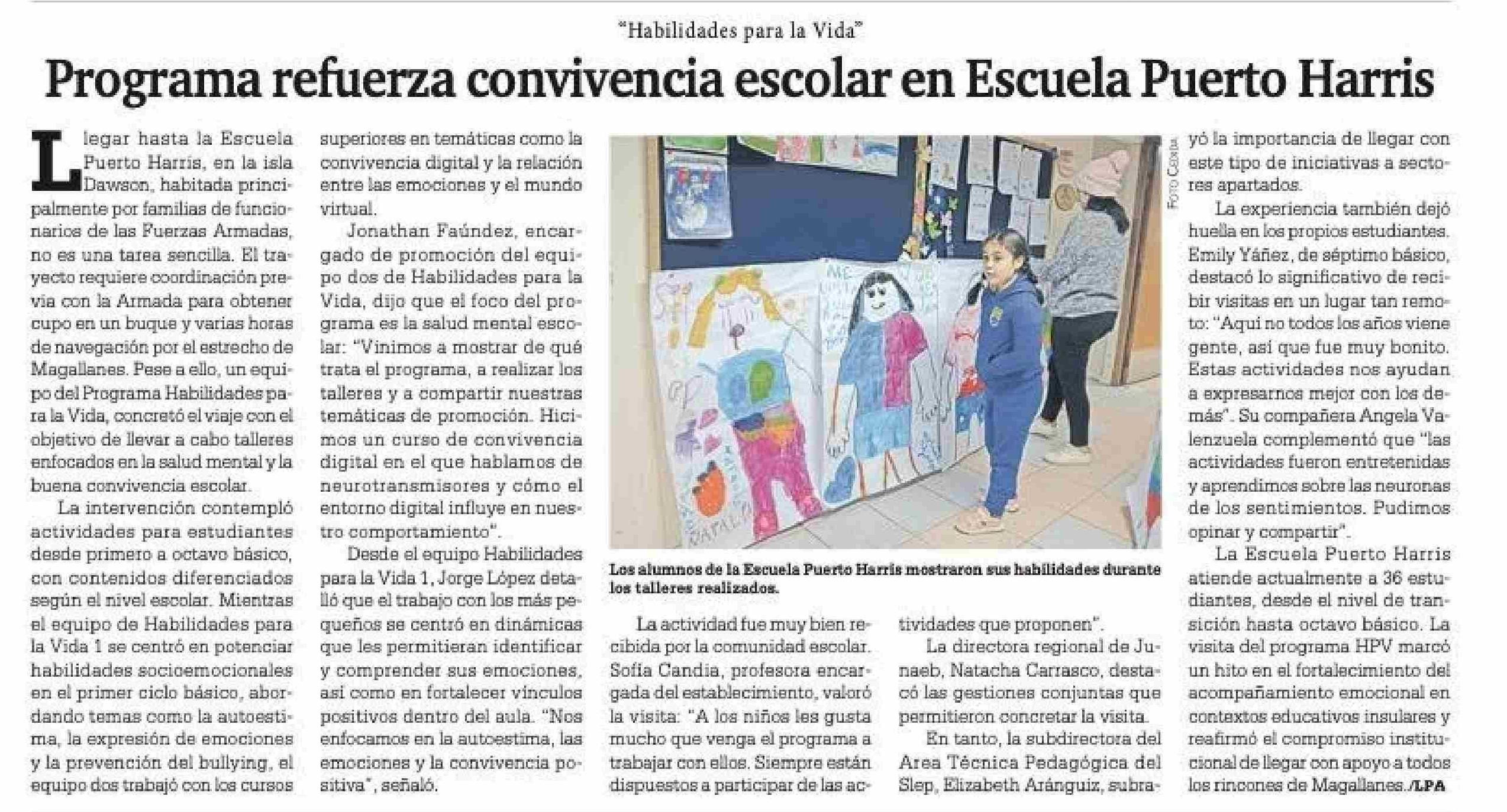 Programa refuerza convivencia escolar en Escuela Puerto Harris 05-06-2025 La Prensa Austral |