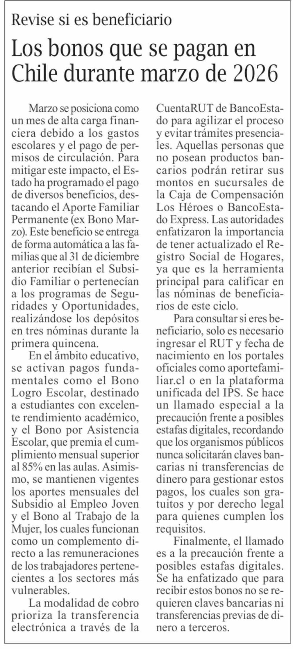 Título: Los bonos que se pagan en Chile durante marzo de 2026