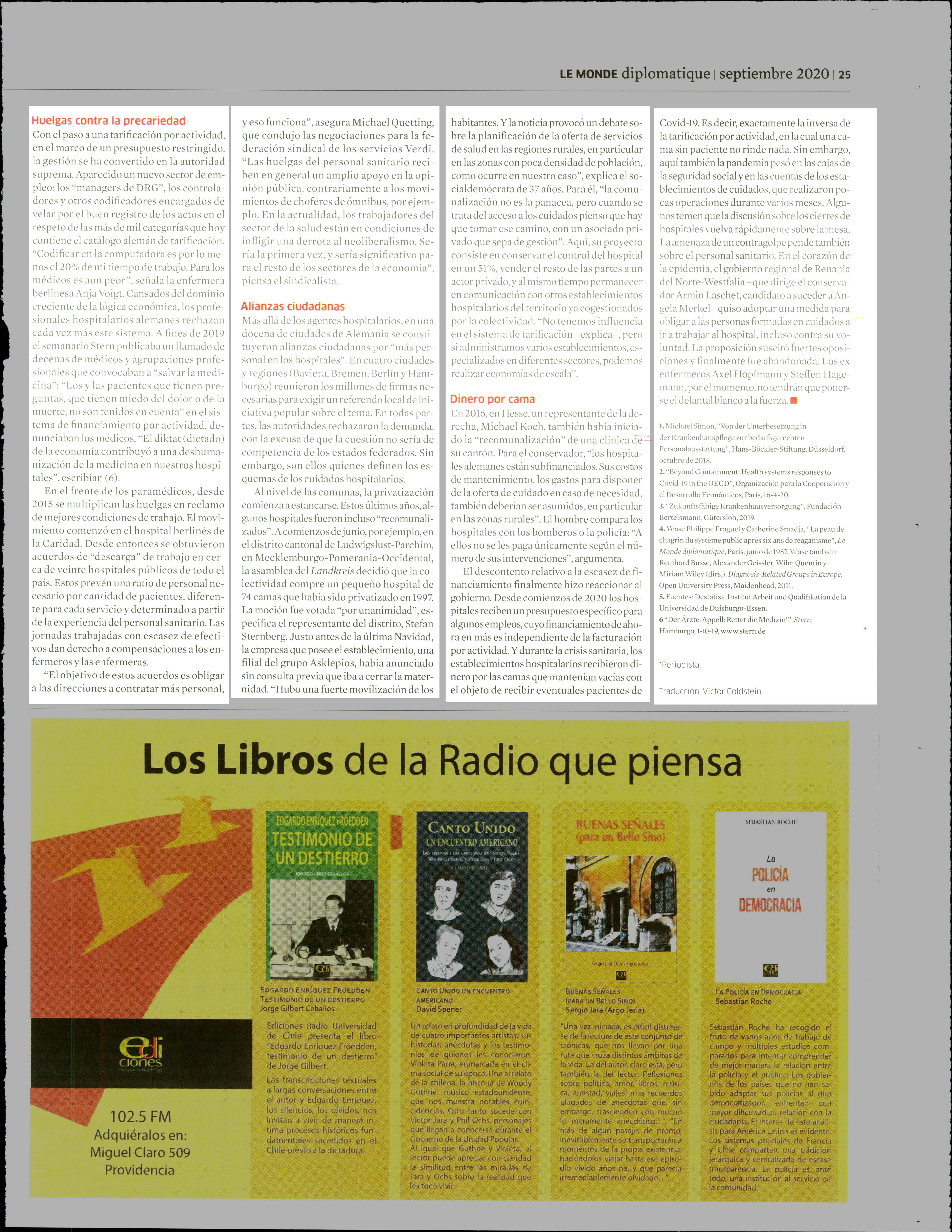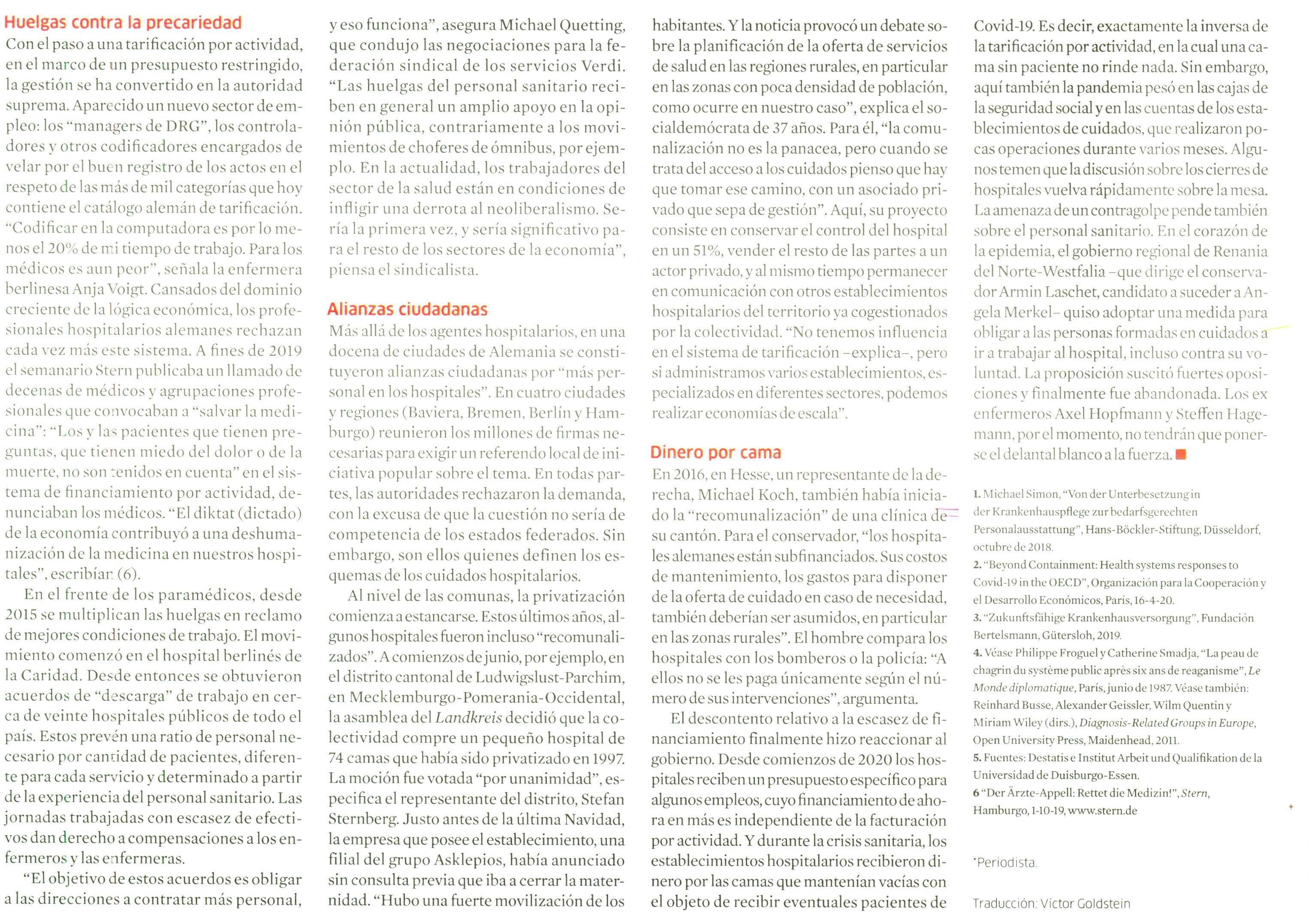 Hospitales alemanes demasiado rentables 12-09-2020 Le Monde Diplomatique |