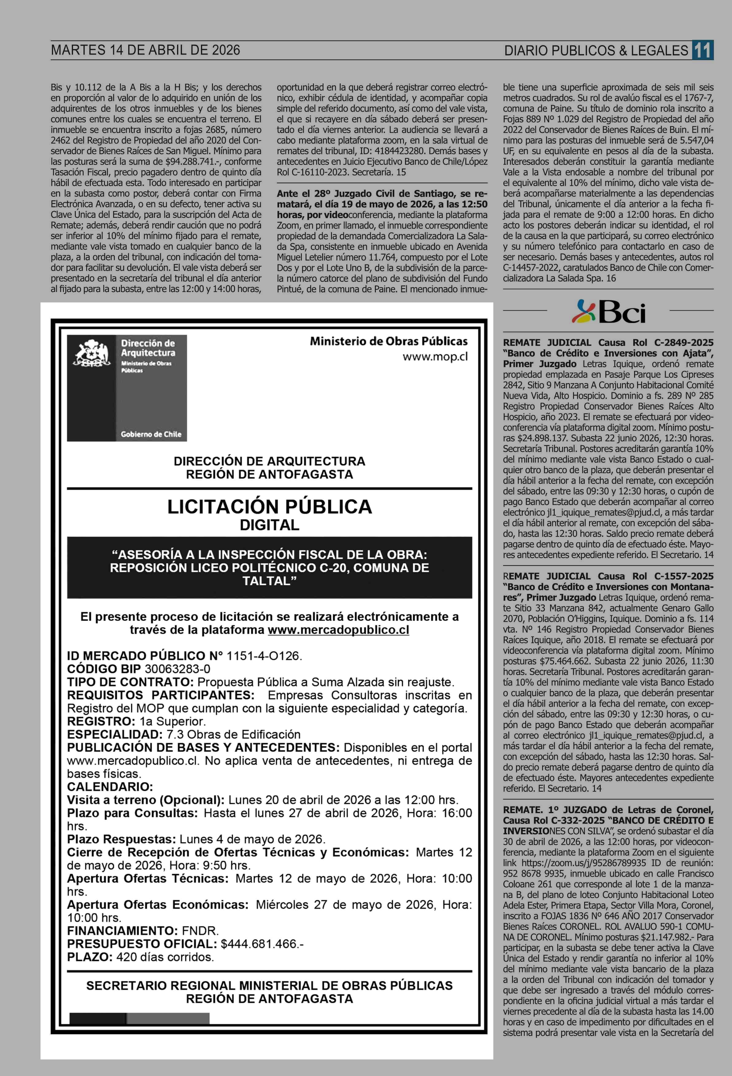 Fecha: 14-04-2026 Sector: Aviso Licitaciones Región: Región Metropolitana de Santiago