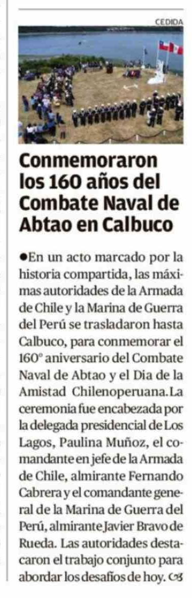 Título: Conmemoraron los 160 años del Combate Naval de Abtao en Calbuco
