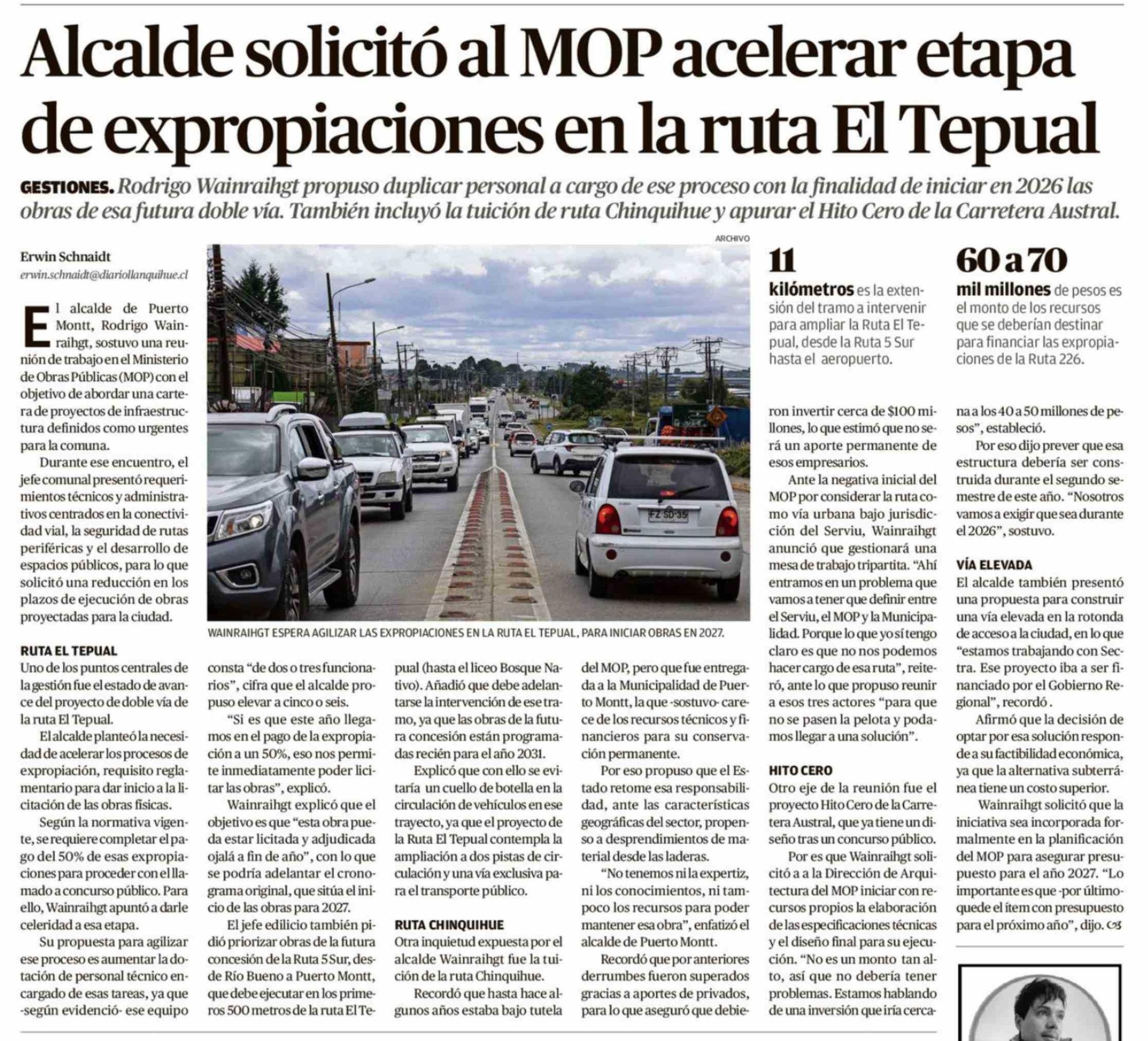 Título: Alcalde solicitó al MOP acelerar etapa de expropiaciones en la ruta El Tepual