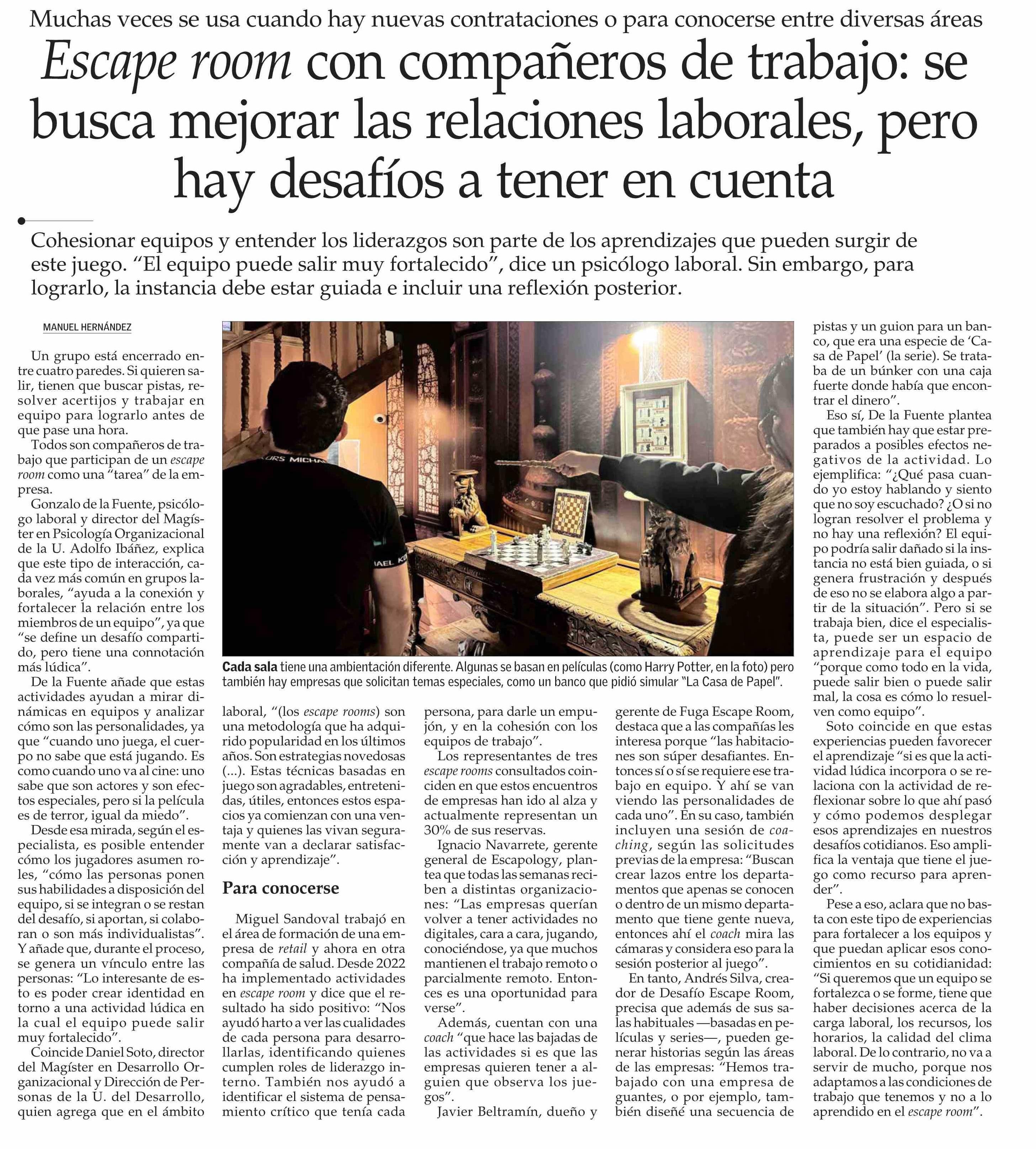 Título: Escape room con compañeros de trabajo: se busca mejorar las relaciones laborales, pero hay desafíos a tener en cuenta