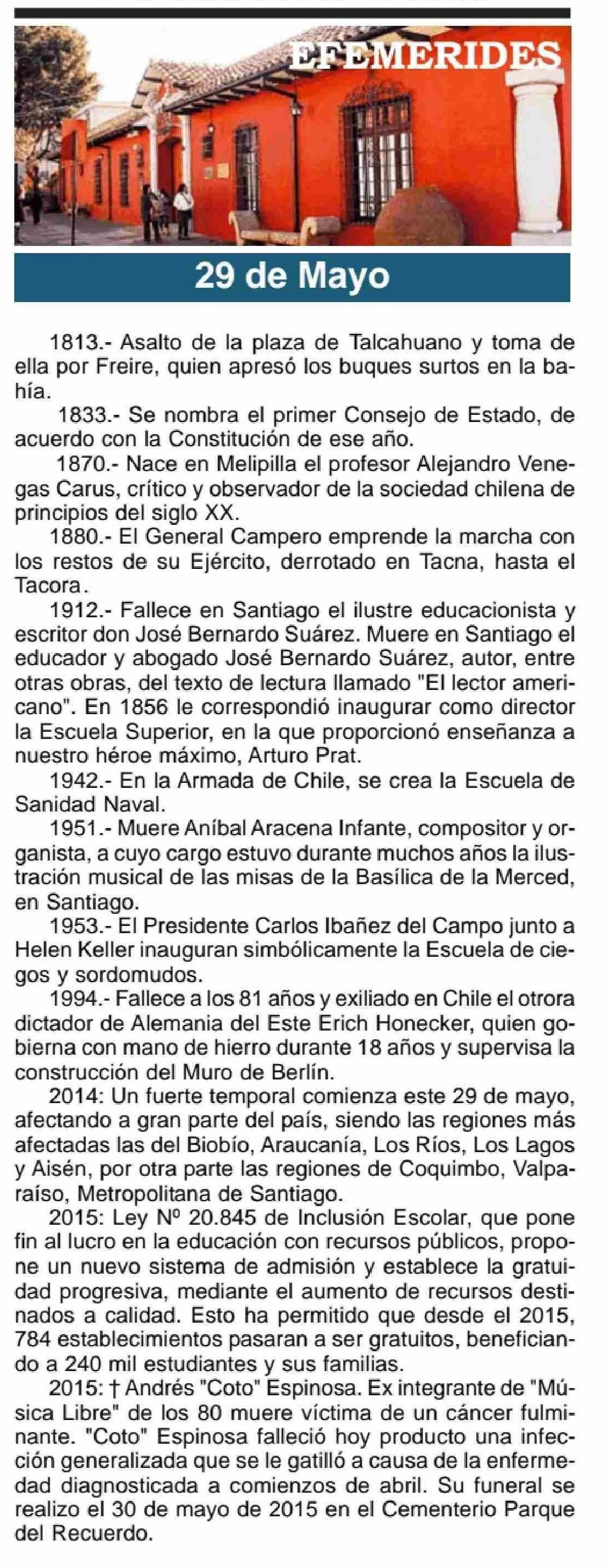 EFEMERIDES 29-05-2025 Maule Hoy |
