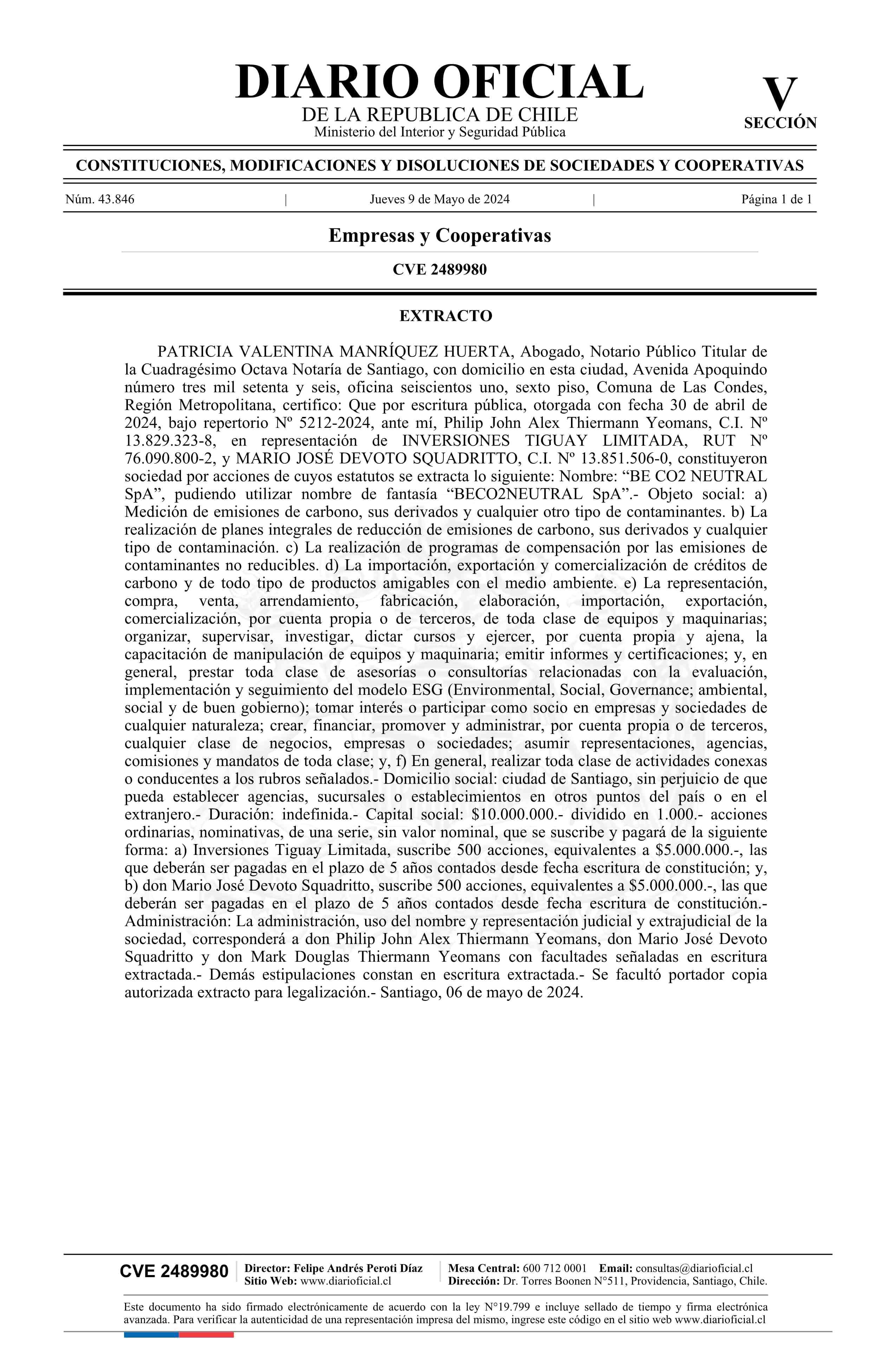 Fuente: Diario Oficial Edición Electrónica (Diario Oficial de Chile - 5 Empresas Y Cooper) Página(s): 31