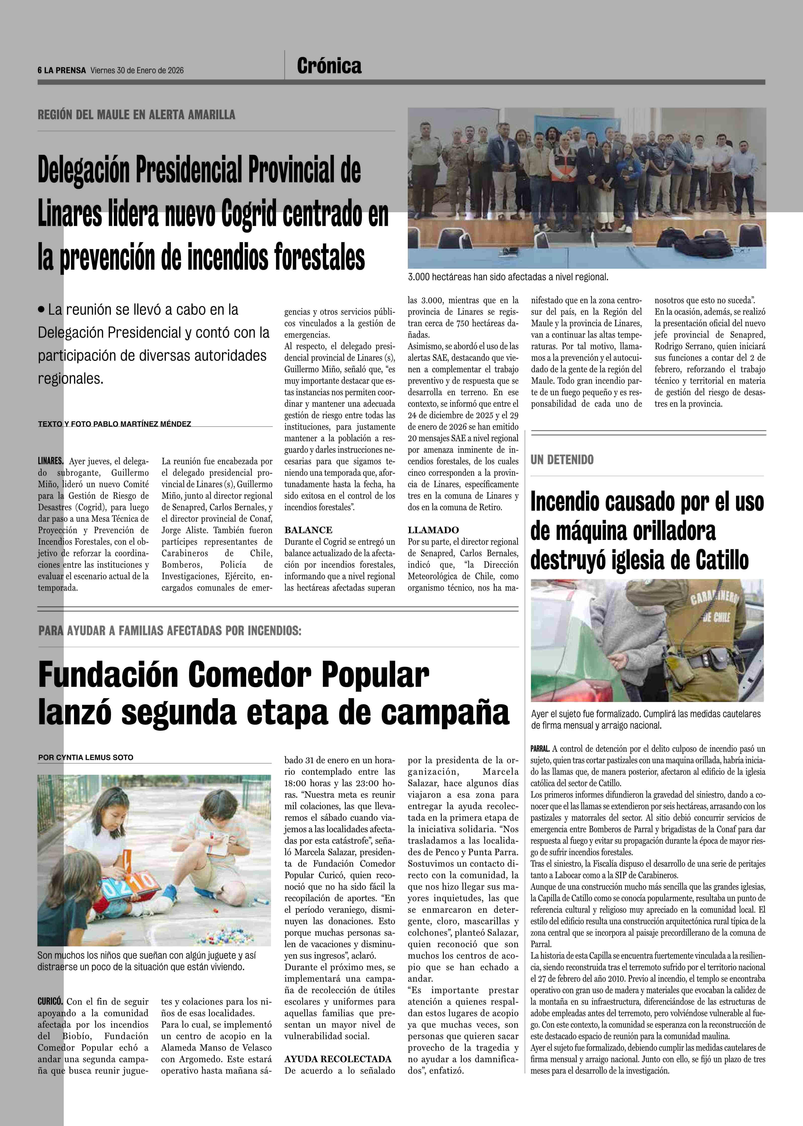 Delegación Presidencial Provincial de Linares lidera nuevo Cogrid centrado en la prevención de incendios forestales 30-01-2026 La Prensa de Curicó |