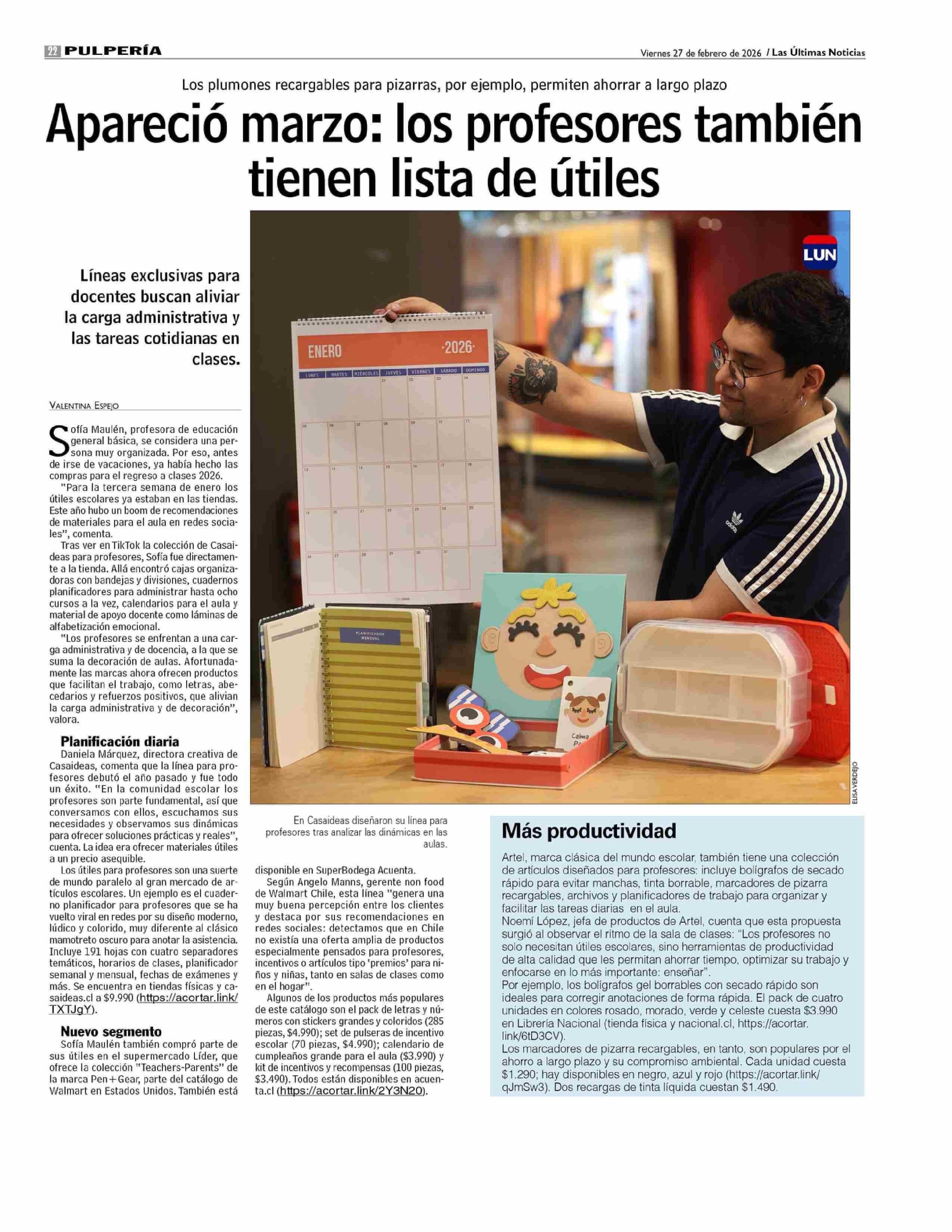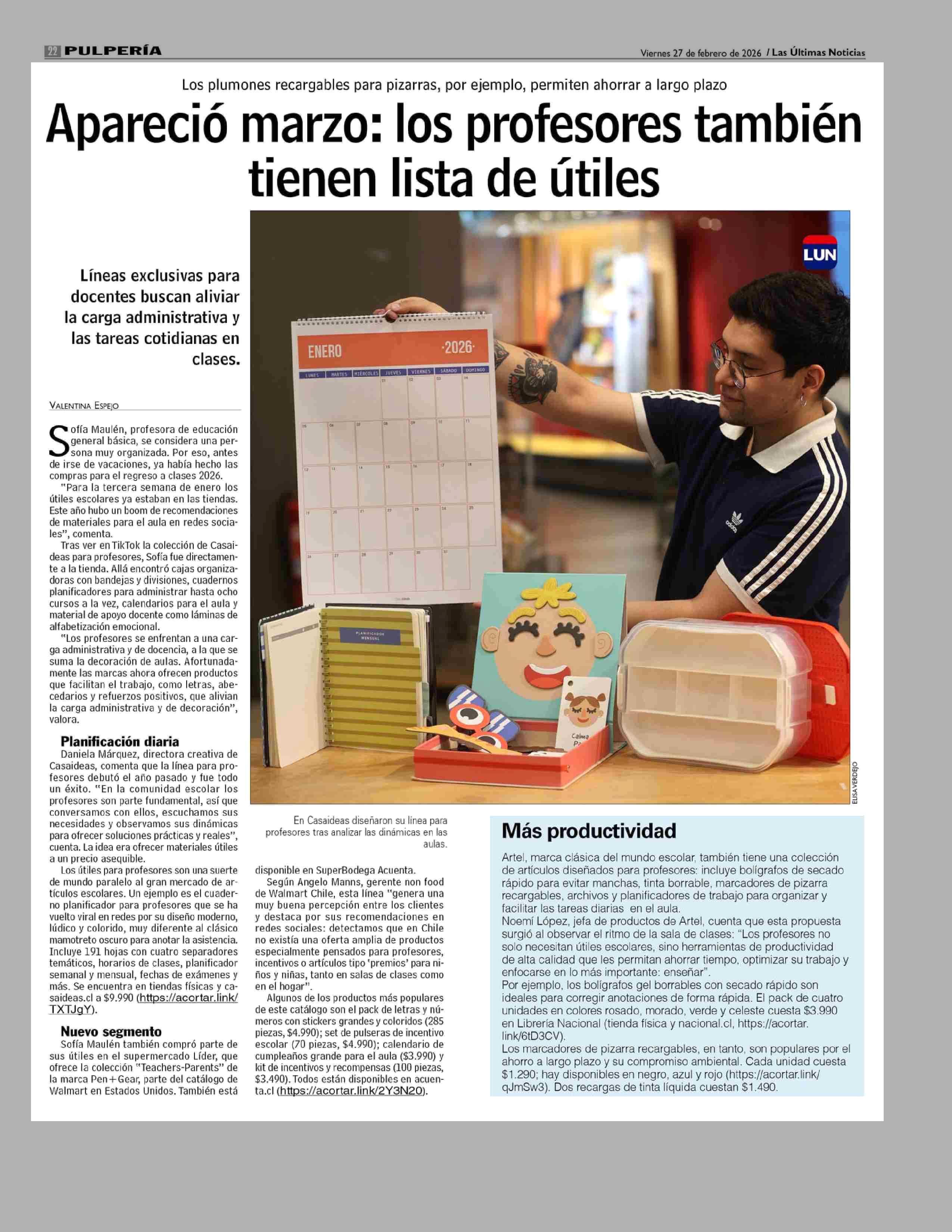 Apareció marzo: los profesores también tienen lista de útiles 27-02-2026 Las Últimas Noticias |