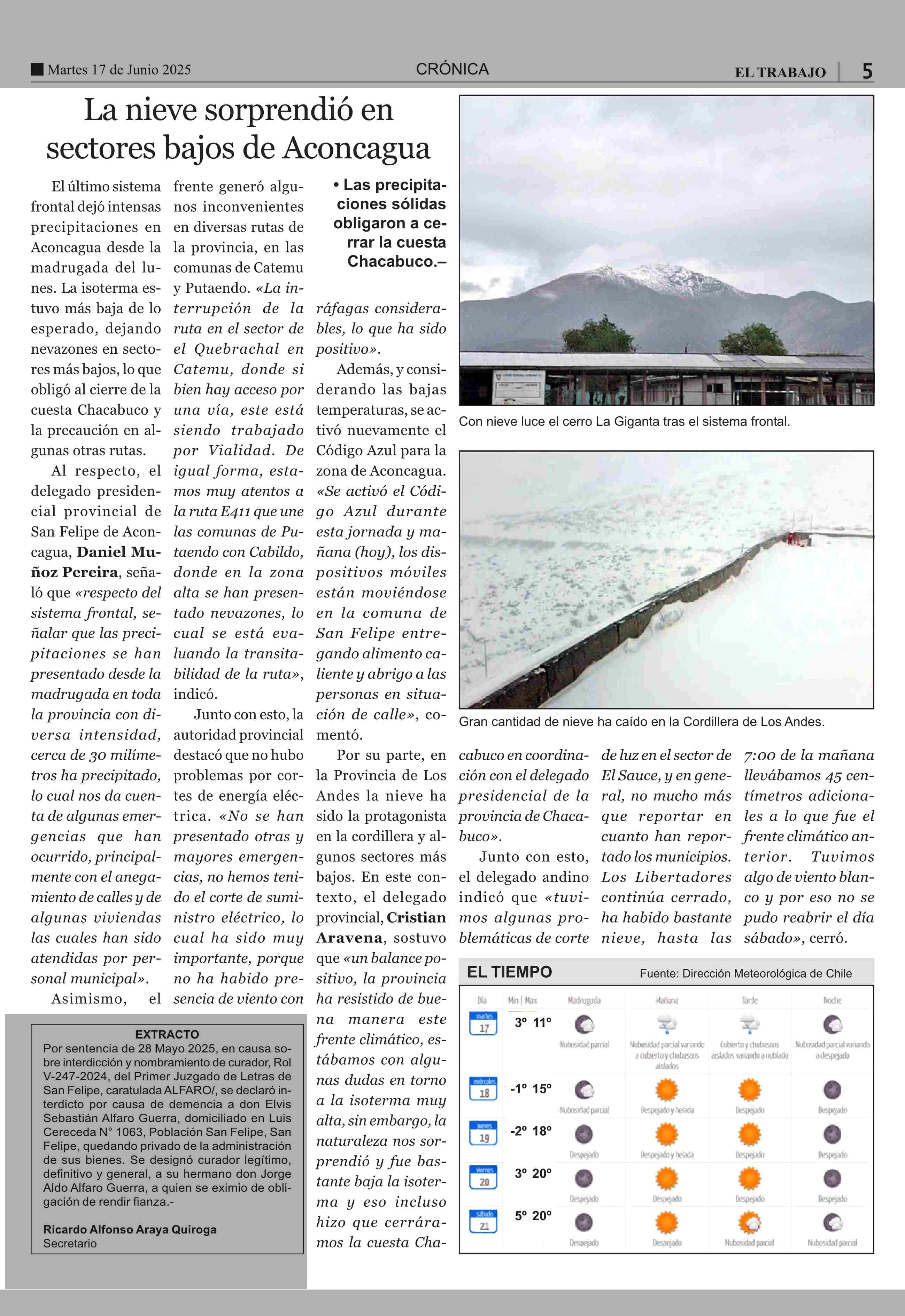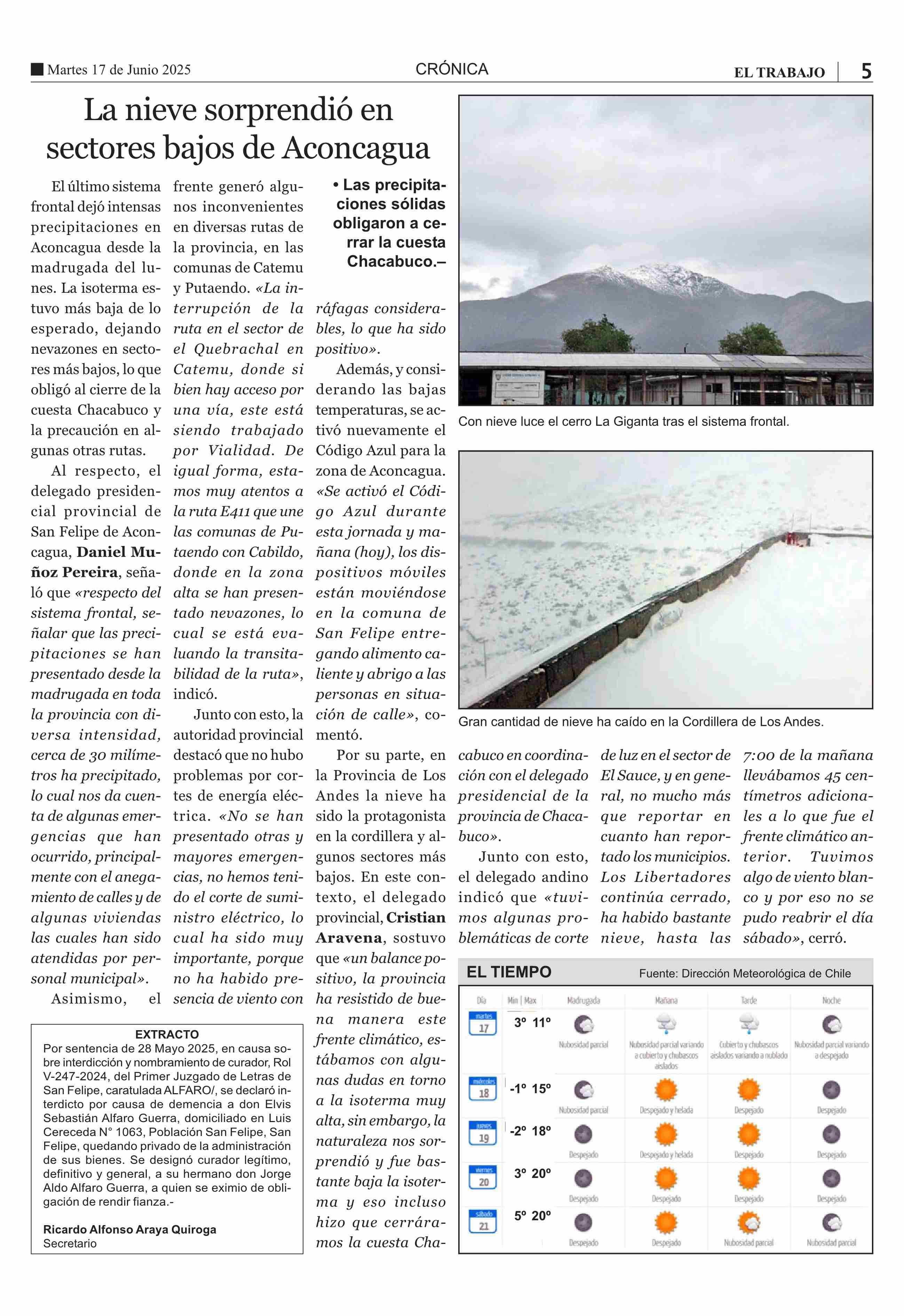 La nieve sorprendió en sectores bajos de Aconcagua 17-06-2025 El Trabajo |