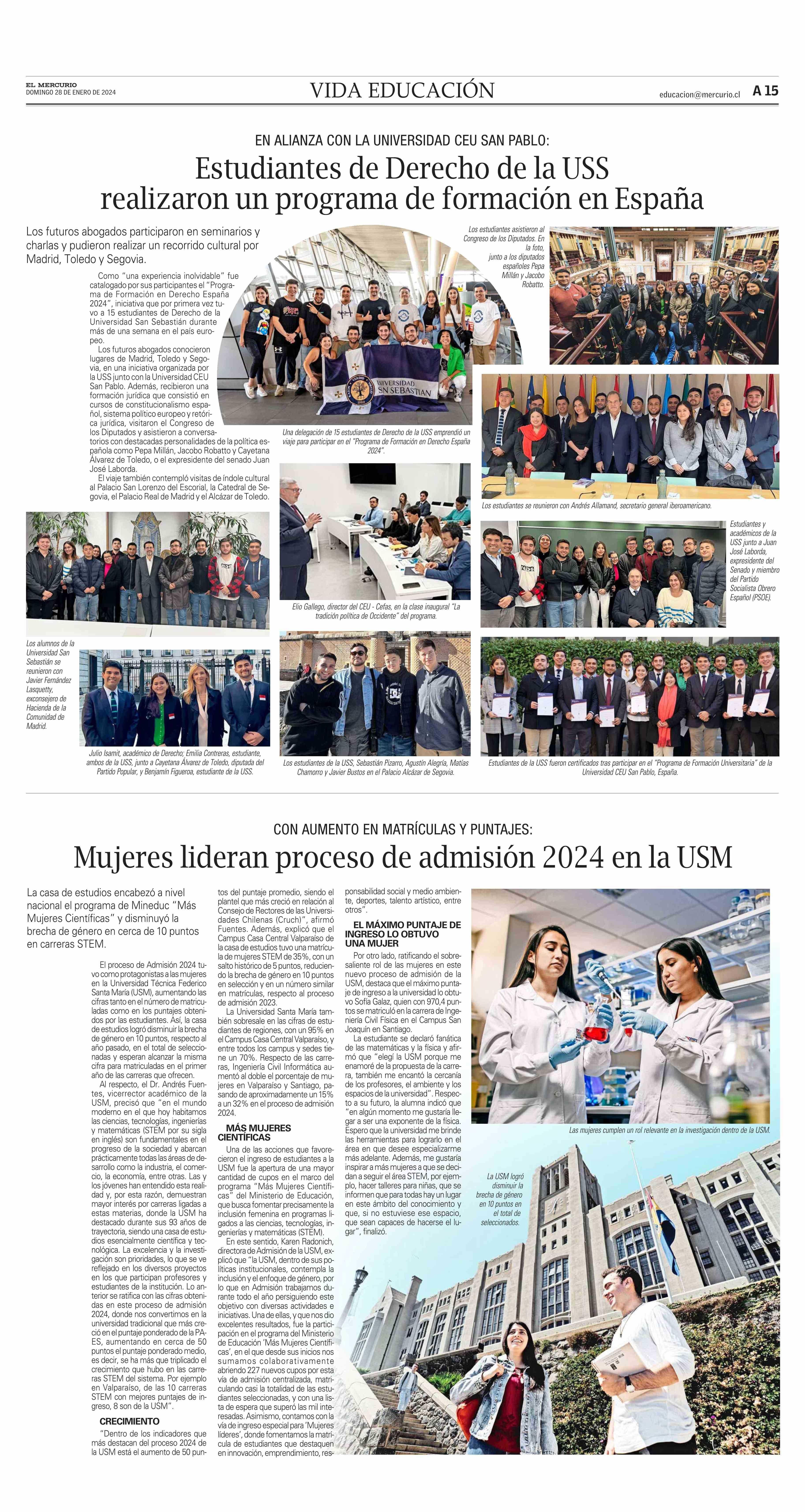 Mujeres lideran proceso de admisión 2024 en la USM 28-01-2024 El Mercurio |