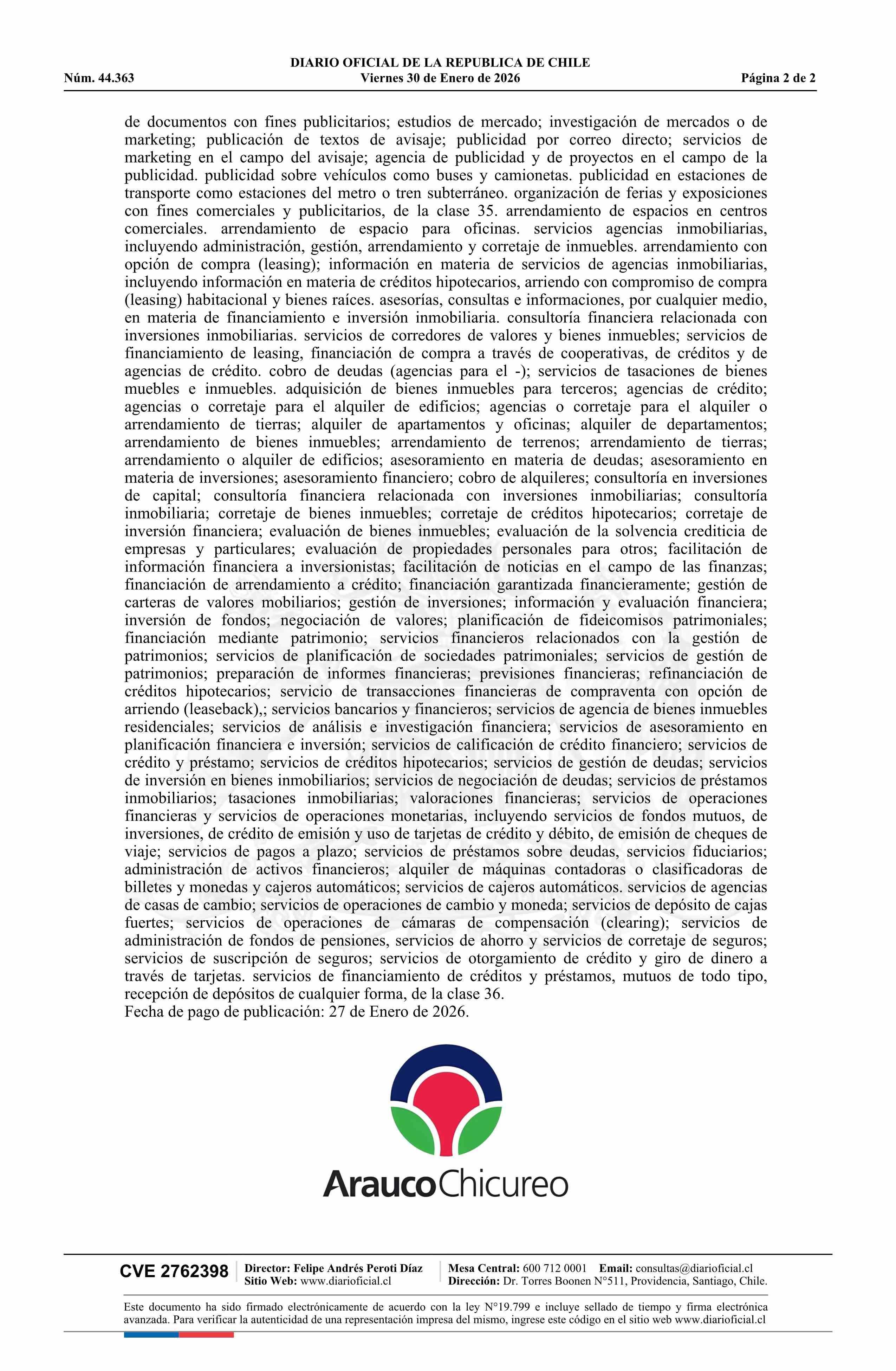 Solicitud número 1649468.- Arauco Chicureo 30-01-2026 Diario Oficial Edición Electrónica |