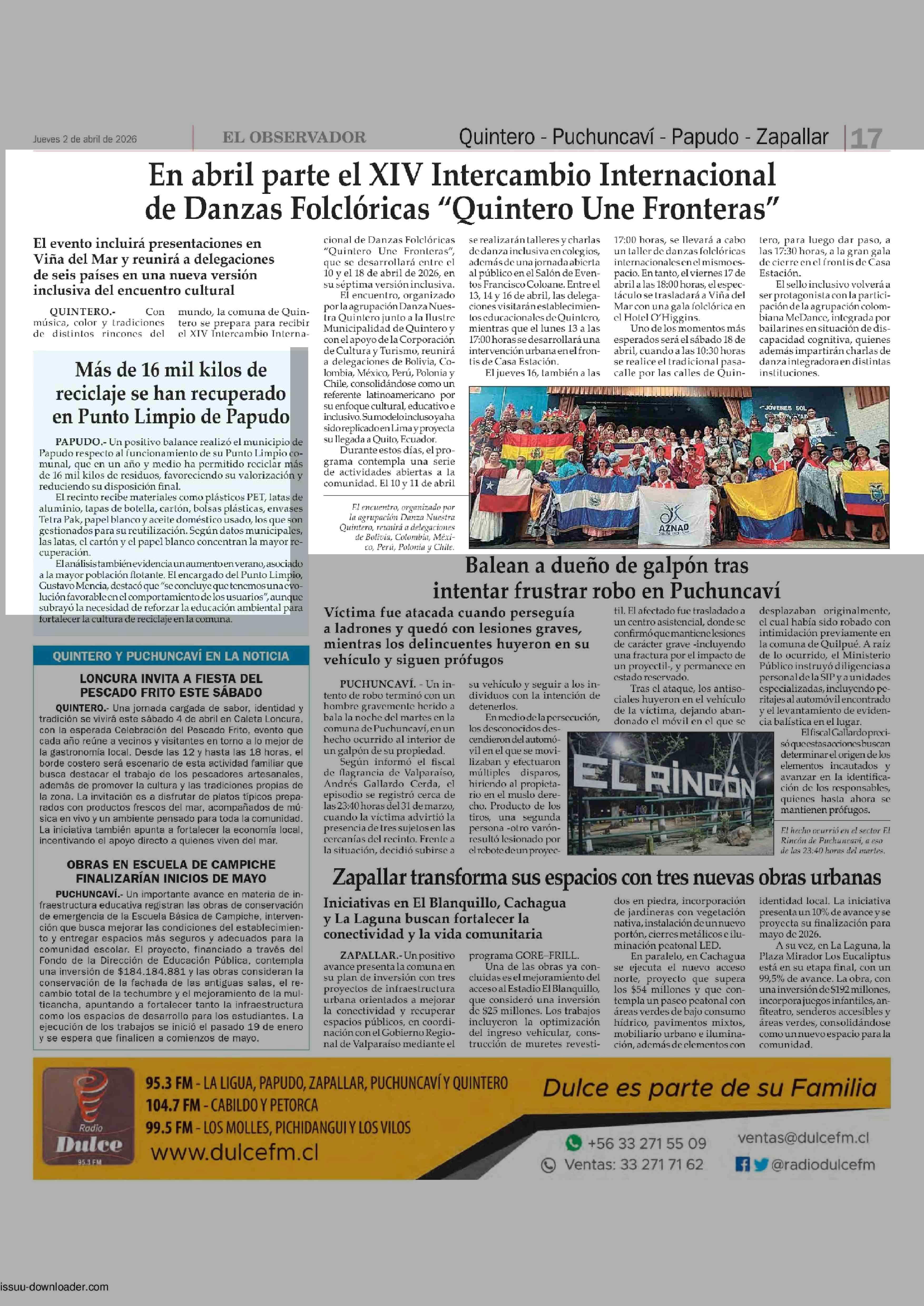 Título: En abril parte el XIV Intercambio Internacional de Danzas Folclóricas “Quintero Une Fronteras”