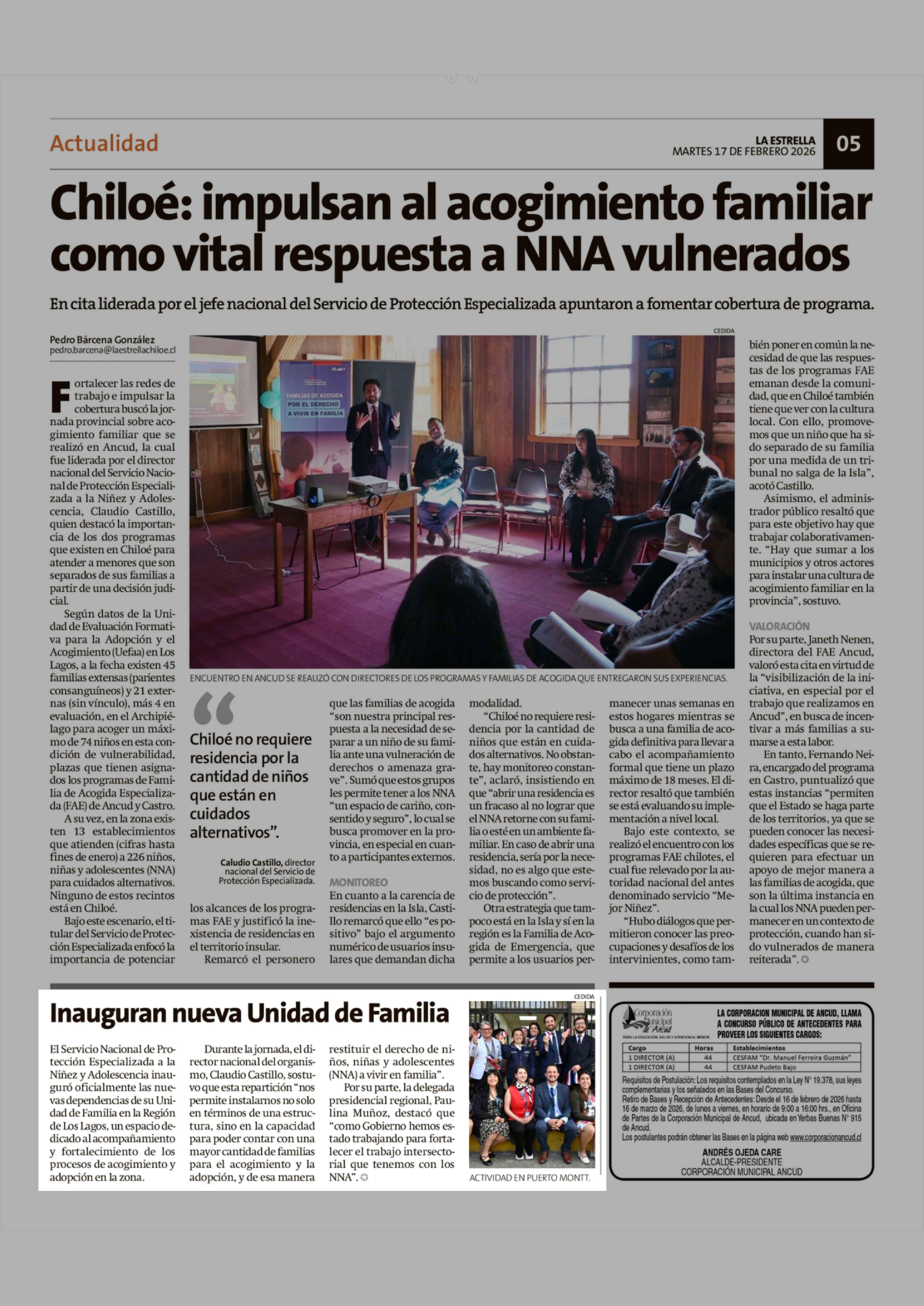 Inauguran nueva Unidad de Familia 17-02-2026 La Estrella de Chiloé |