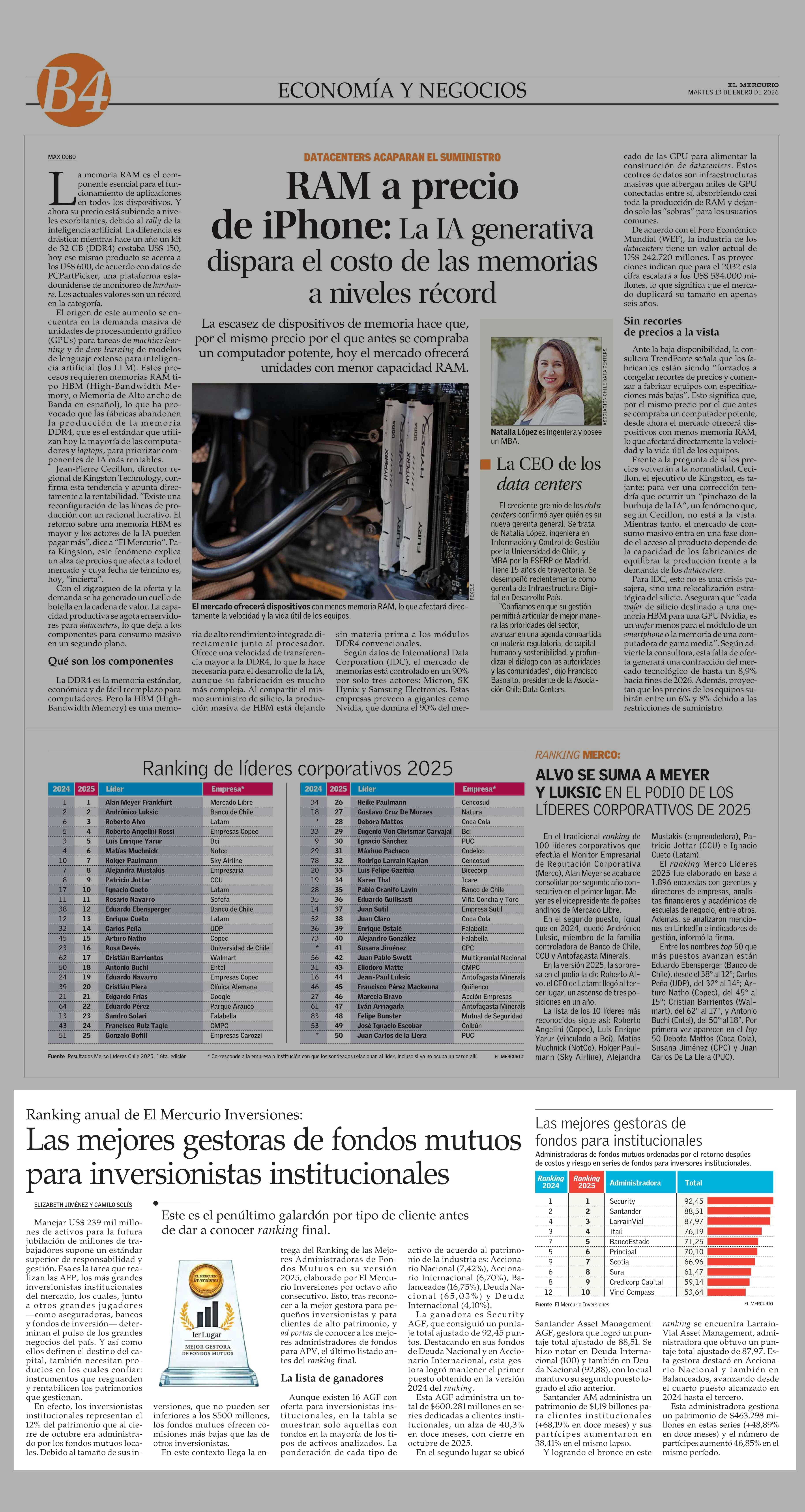 Las mejores gestoras de fondos mutuos para inversionistas institucionales 13-01-2026 El Mercurio |