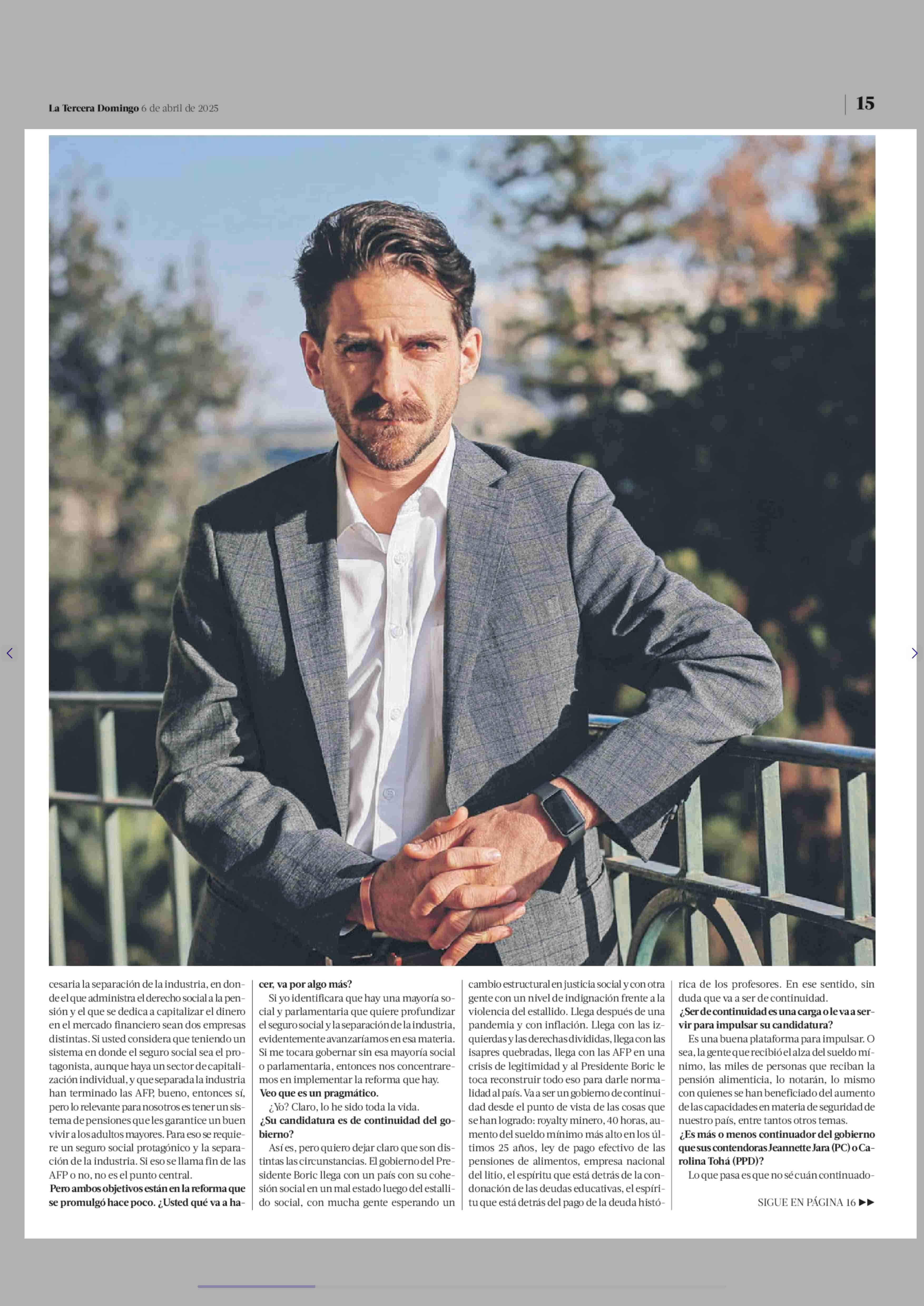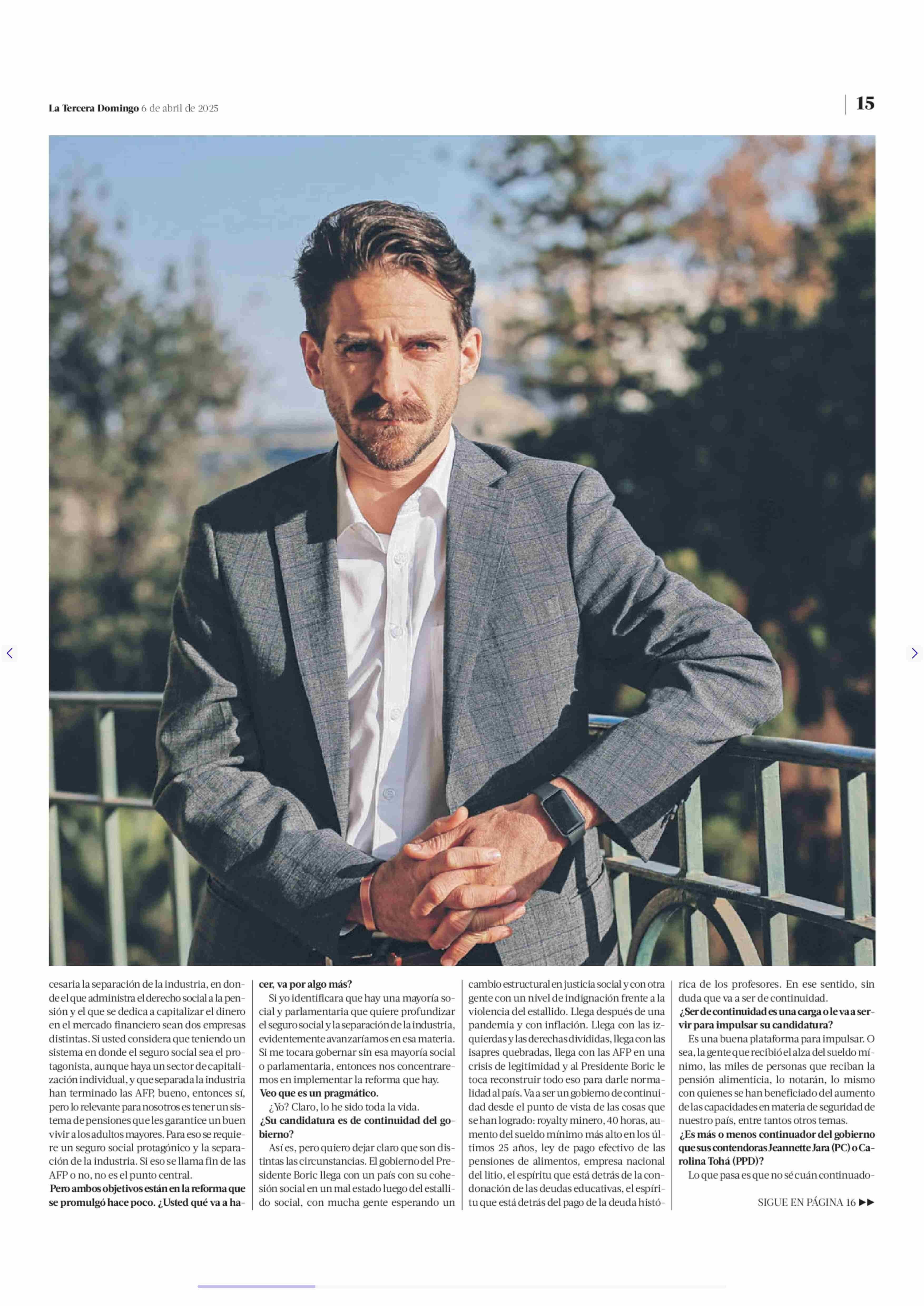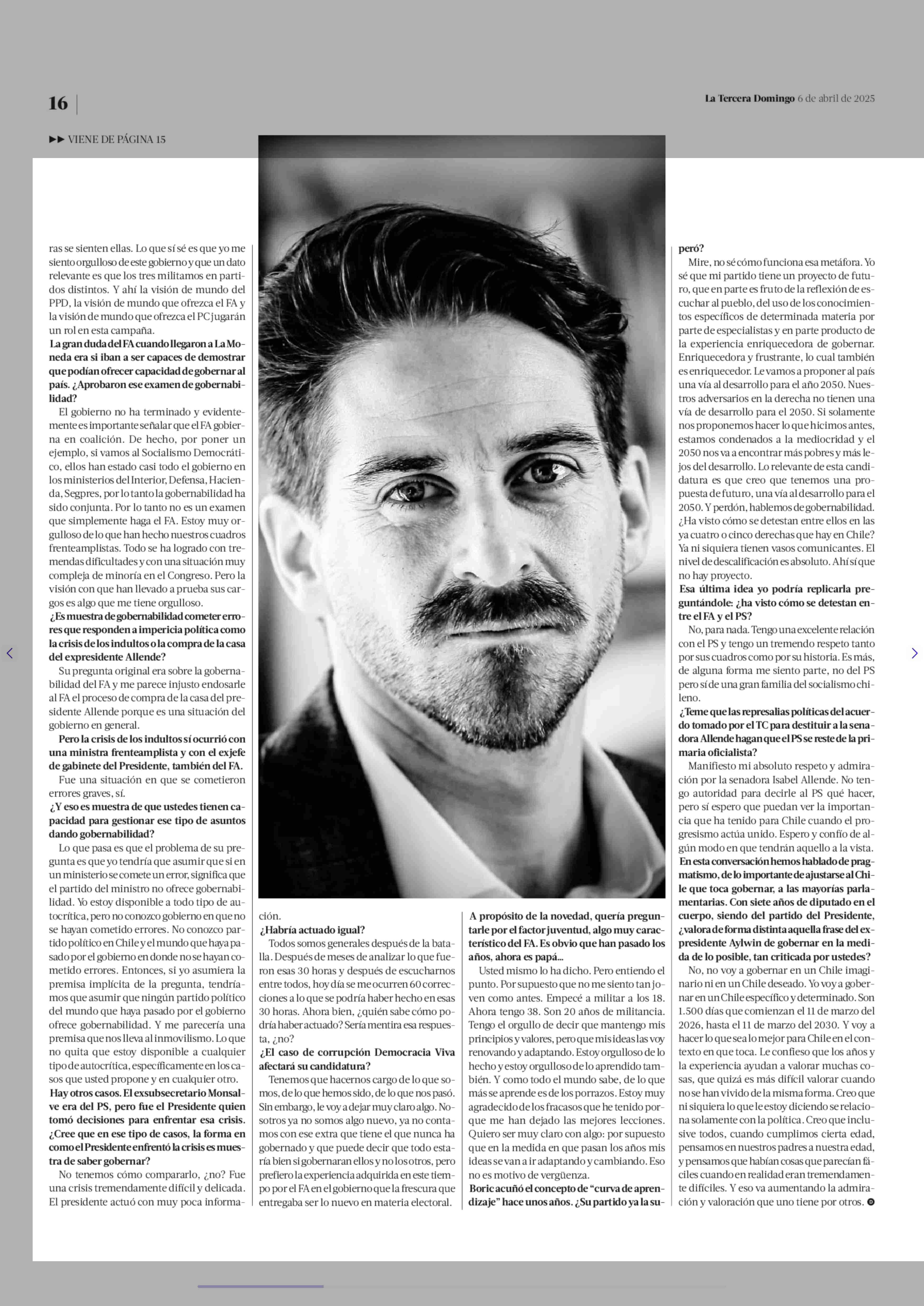 Gonzalo Winter: “Prefiero la experiencia adquirida por el FA en el gobierno que la frescura que entregaba ser lo nuevo” 06-04-2025 La Tercera |