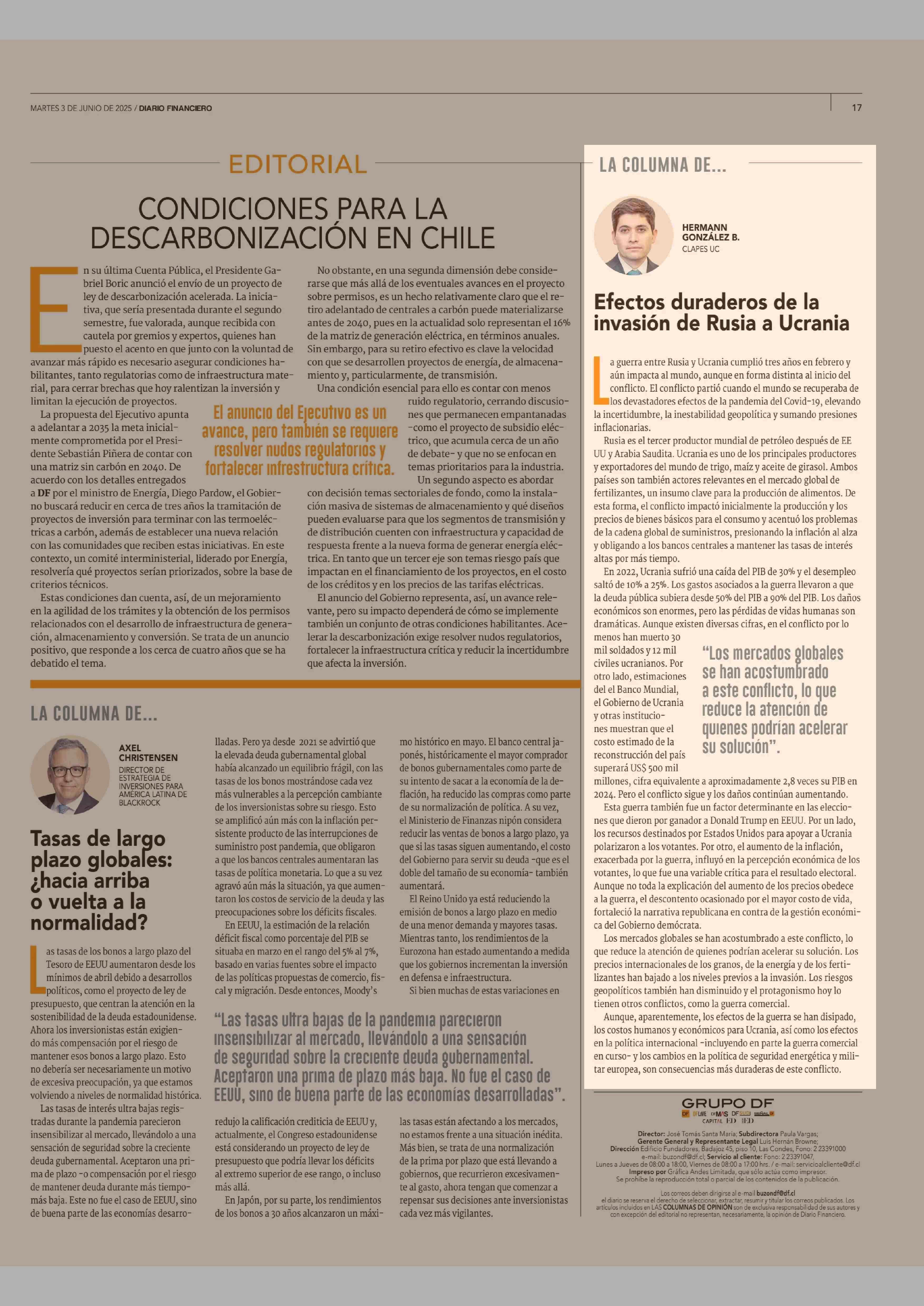 COLUMNAS DE OPINIÓN: Efectos duraderos de la invasión de Rusia a Ucrania 03-06-2025 Diario Financiero |