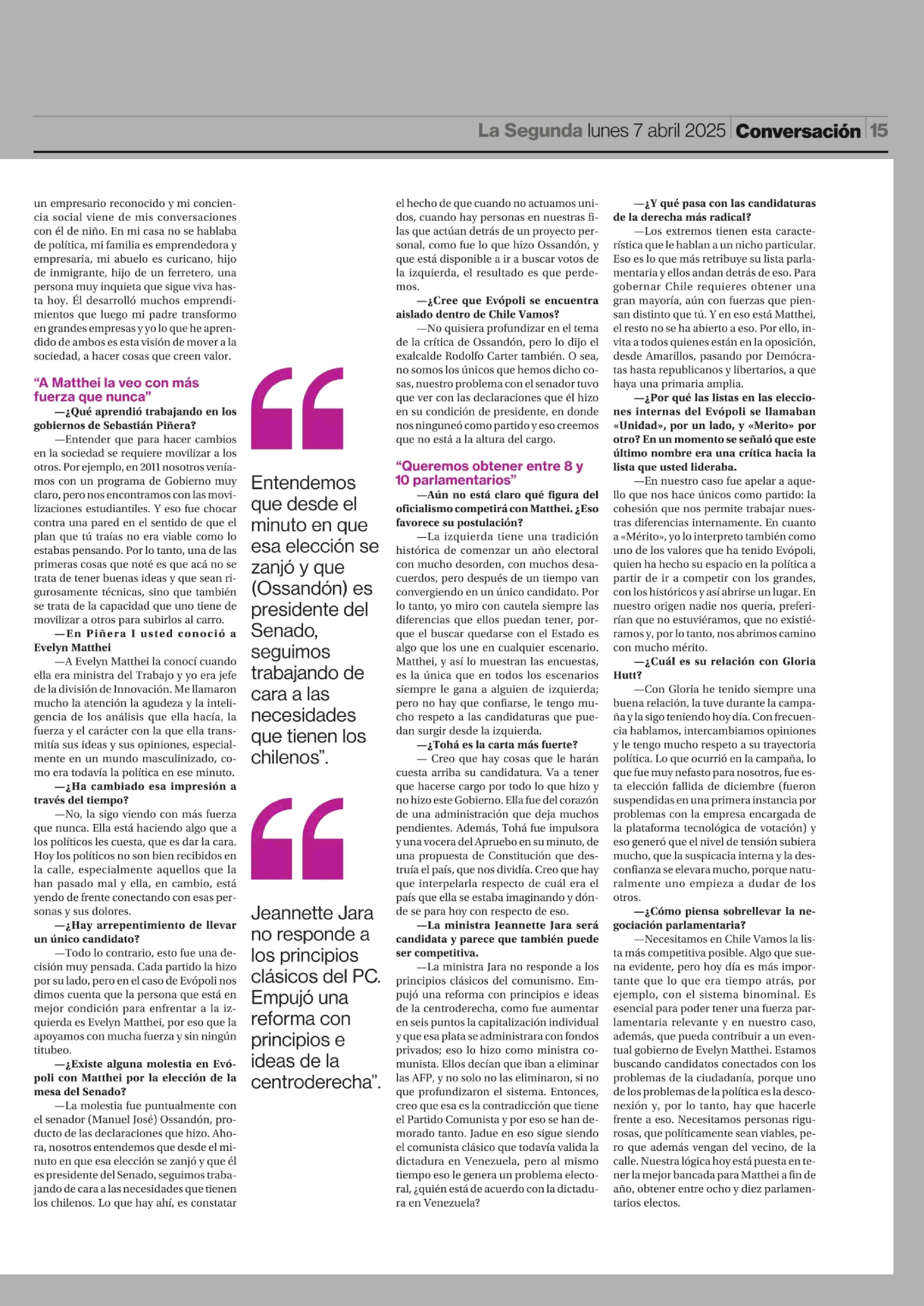 “Ossandón nos ninguneó como partido” 07-04-2025 La Segunda |
