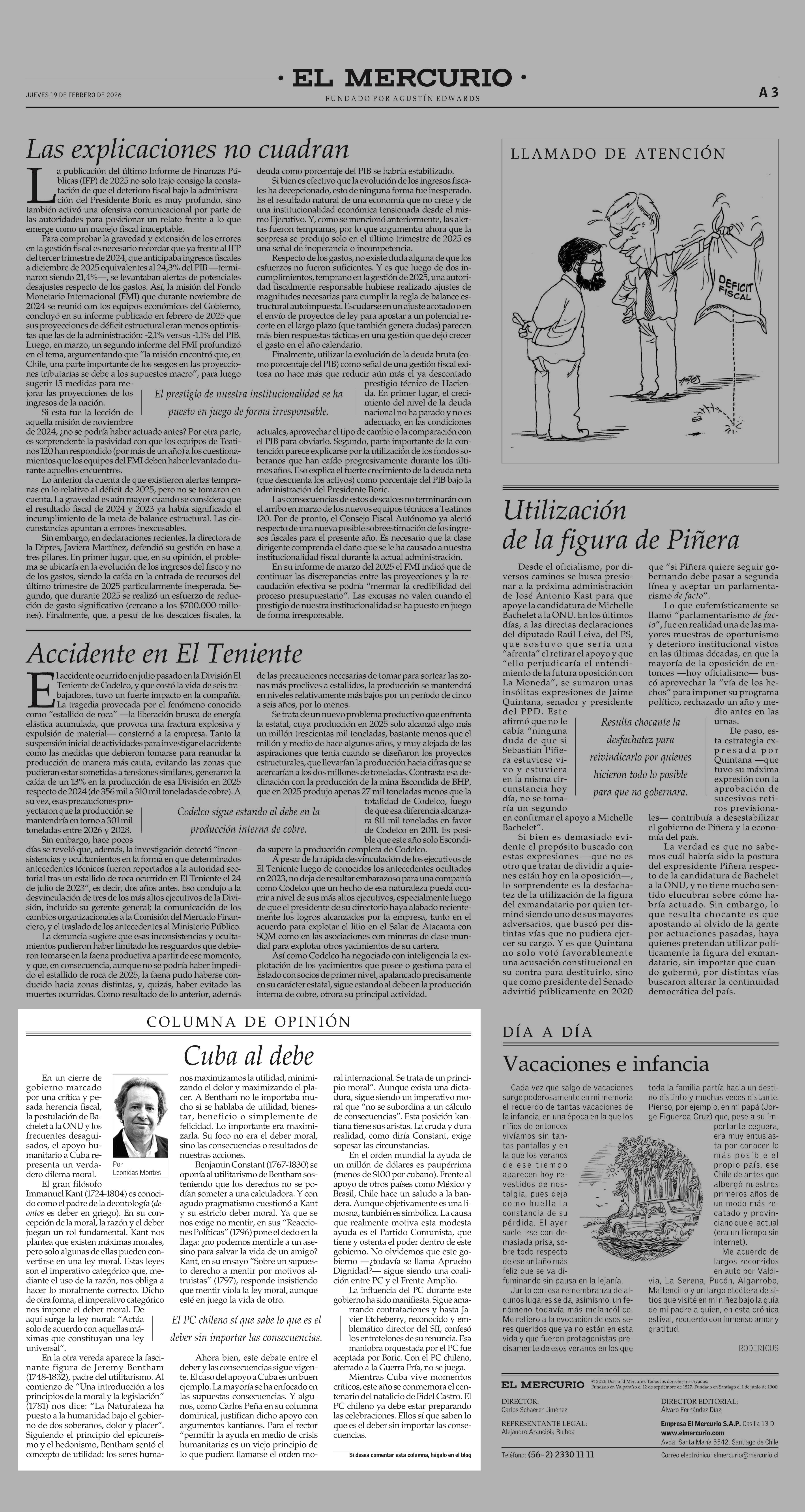 Columnas de Opinión: Cuba al debe 19-02-2026 El Mercurio |